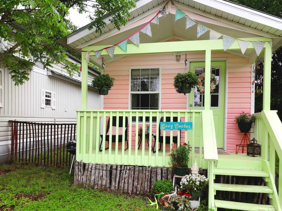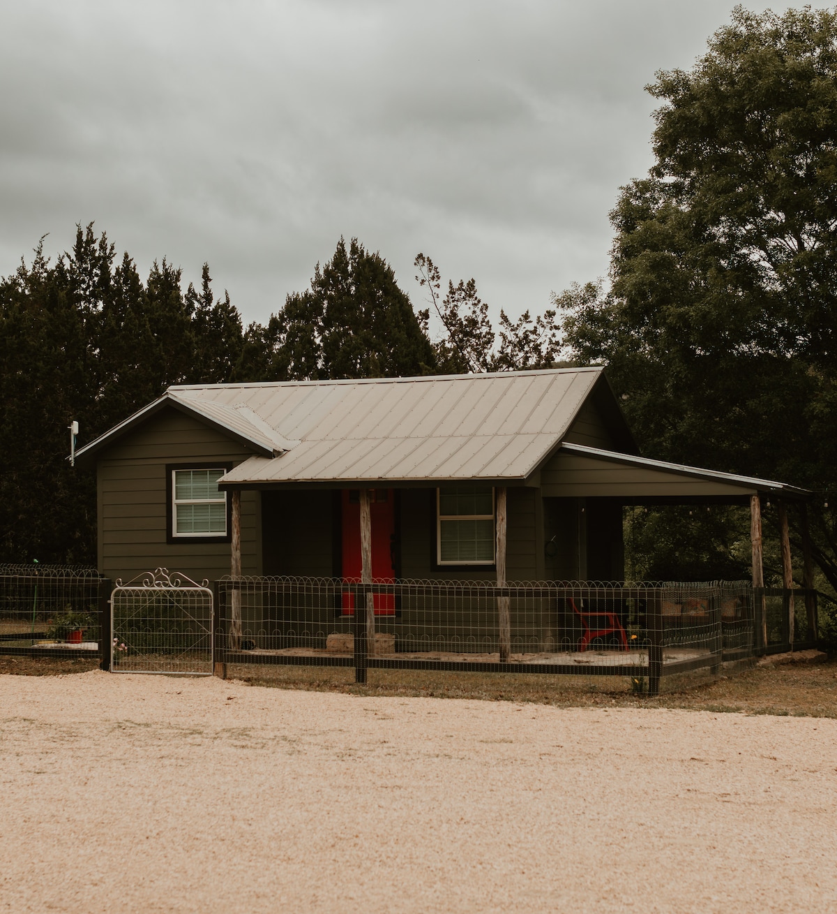 Ən kiçik və ən kiçik evciyimiz (çox kiçikdir!). Bu işıqlı və havalı, super kiçik bir otaq studiyası kiçik ev (mini soyuducu və mikrodalğalı soba) ilə təchiz edilmiş kiçik ev 83, Qarnerdən 3,4 mil, Frio çayından 3,3 mil məsafədə yerləşir. Ərazini kəşf etdikdən sonra iki nəfərin dincəlməsi üçün mükəmməl olmayan frilans yeri. Bu, tam mətbəxə malik olmayan, açıq havada bbq çuxuru olan yeganə evcikimizdir. Cins məhdudiyyətləri ilə hər itə görə 60 dollar ev heyvanı haqqı. 50 funtdan çox it yoxdur