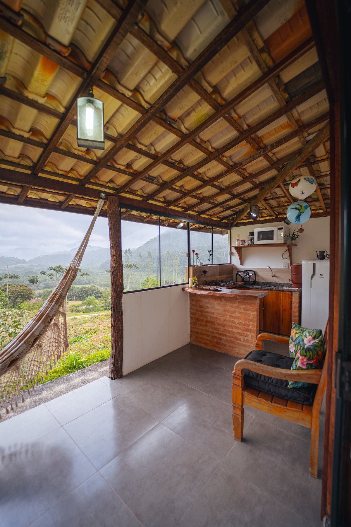 Cabana toda de pedra, única, aconchegante e confortável, com requintes rústicos nos detalhes. A casa é pensada para transportar os hóspedes para uma experiência única em contato com a natureza. Possui sala com lareira, varanda aberta com churrasqueira e fogão a lenha, área de lazer com piscina e com acabamento em pedra e água cristalina de mina, quadra de vôlei, campo de futebol society, ducha e açude com trilha ecológica do Pau Brasil.
