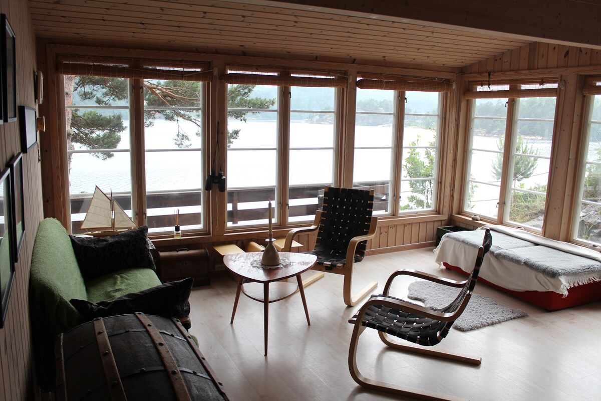 Bütün günü hündür ağaclar və günəş şüaları ilə əhatə olunmuş dənizə yaxın super kabinə. Kabinədə yemək və istirahət üçün balkon və geniş dam terrası var. O, günəş vannası qəbul etmək və üzmək üçün gözəl yerləri, eləcə də kayak və ya kanoe ilə araşdırmaq üçün gölləri olan ərazidə yerləşir. Yaxınlıqda barı/restoranı , üzgüçülük hovuzu, voleybol meydançası, tennis kortu və s. olan otel də var. Yaxınlıqda yerləşən füsunkar bərə və ya yerli qayıq icarəsi şirkəti tərəfindən icarəyə verilə bilən qayıqla Risør şəhərinə qısa yol.