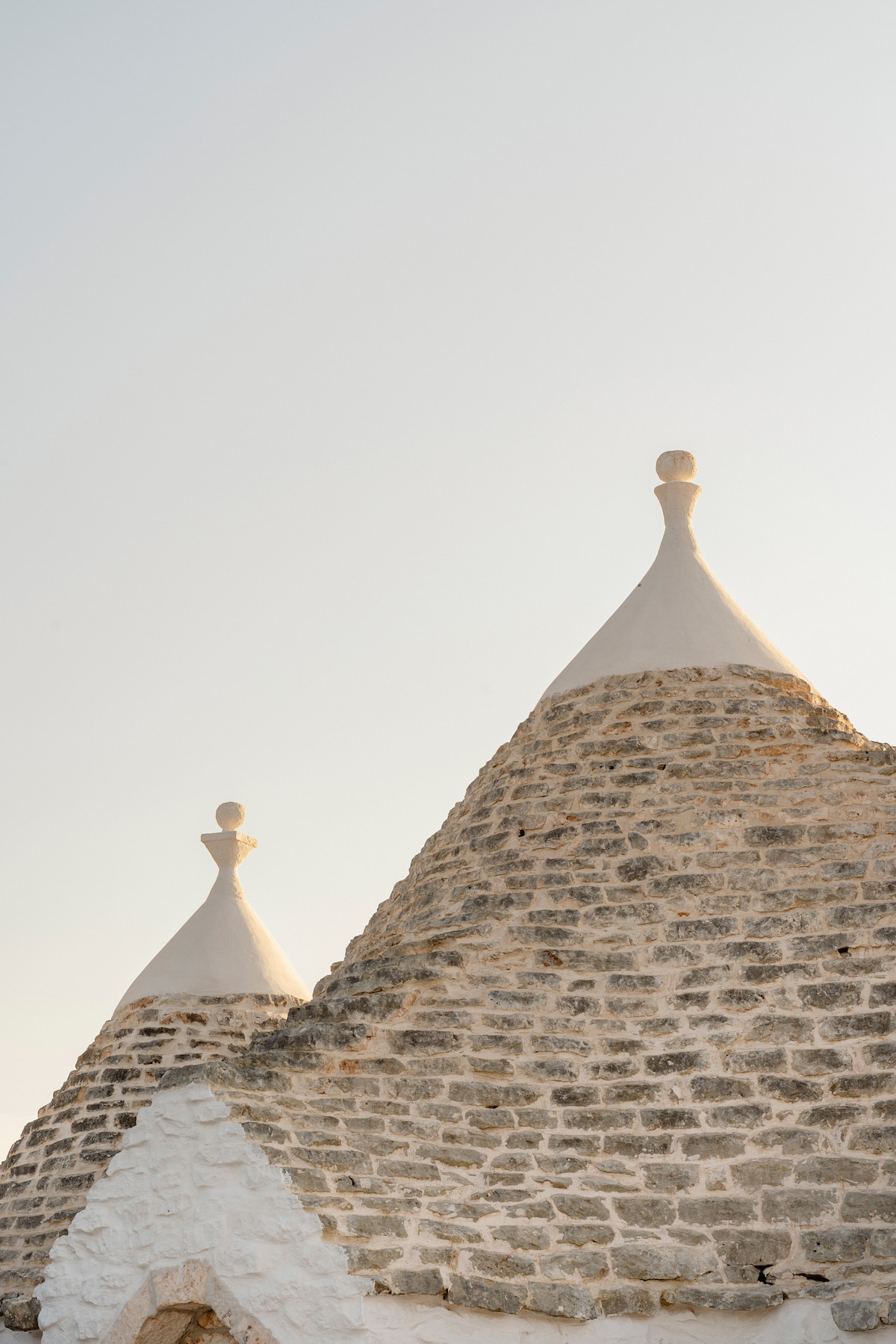 This unique space, carved inside traditional trulli, has its own charm and lets you experience the true spirit of the Itria Valley. You enter through an old strawberry‑grape pergola. The kitchen and bathroom are set in the alcoves, while the dining and sleeping areas are located in a saracen trullo and a tall‑cone trullo. The private patio and nearby infinity‑edge pool offer views of the valley and the skyline of Ceglie Messapica.