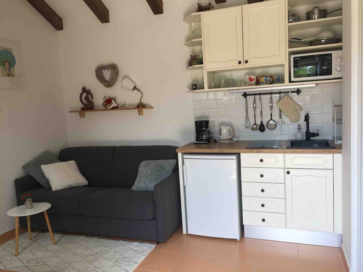 Cozy tiny house with large outdoor living area, nestled among pine trees, surrounded by beautiful natural landscapes where MOUNTAINS, RIVER and SEA come together. Peace and tranquility await, located only 10 minutes drive from the town of OMIŠ. Perfect place for nature loving couples looking for seclusion, privacy and retreat atmosphere but very close to numerous wonderful places, beautiful beaches and tourist attractions.