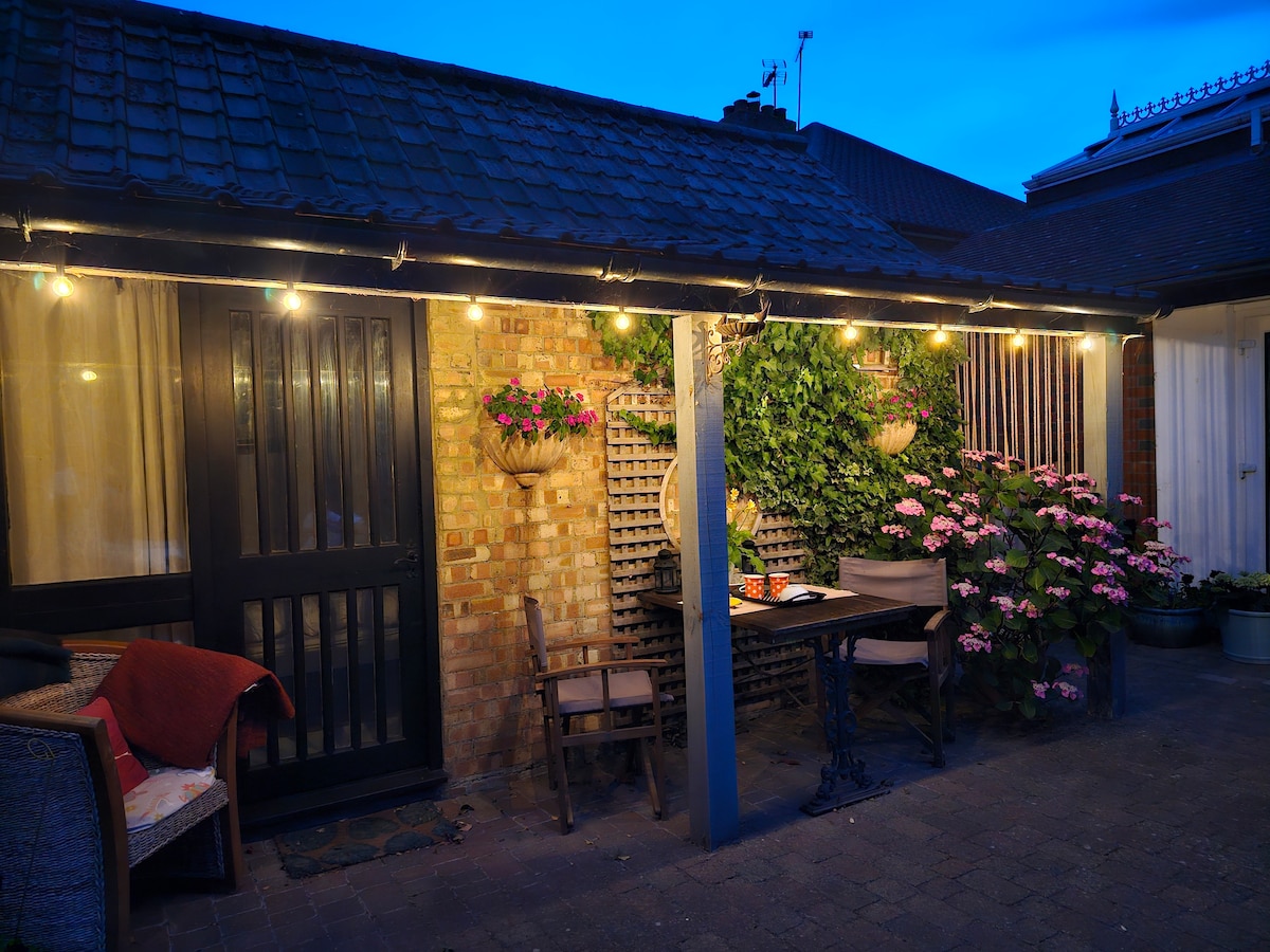 Çöldə sevimli yemək yerləri olan dörd pivəxana/restoranı olan böyük kənddə özünə məxsus və dəbli bir əlavə. Yaxşı təchiz olunmuş mətbəxdə paltaryuyan maşın və qaz yanacağı olan istirahət zonası var. Günəşli səhər yeməyi/axşam içkiləri üçün çöldə məkan. Gəzinti məsafəsi əsas xətt stansiyası (London 50 dəqiqə) və yayma kəndi. Vəhşi və ya ənənəvi dənizkənarı, zoopark və tarixi yerlərə qısa sürmə. Sahiblər qonşu evdə yaşayırlar. Öz-özünə giriş və açarsız giriş.
