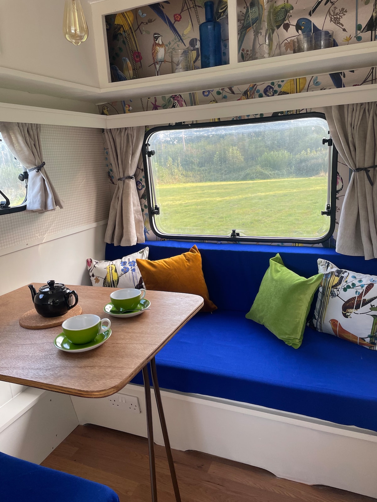 Glamp in style, in an iconic Airstream….open March - Mid Nov. Set within the 16 acre plot belonging to the main house. Surrounded by nature in a beautiful location, with amazing walks and an abundance of wildlife. Have an early breakfast on the deck and you may spy a grazing deer! No Wifi but very good 4G, terrestrial TV, board games, fire-pit BBQ & a very comfy bed. The stylish horse box bathroom also has mains plumbing. Well behaved dogs are very welcome…let us know if they’re joining you.