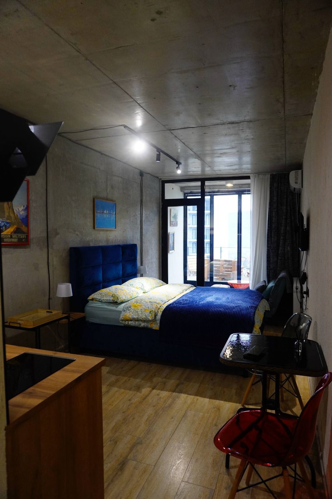 High-ceilinged apartment with a large bedroom in the central prestigious residential district of Tbilisi. With two balconies with blinds. The apartment is located next to Park Mziuri, the street is very green. It is comfortable for both walking and transport. Here are cafes, restaurants, shopping malls and banks. You can walk in old Tbilisi, and you can get to the turtle lake by cable car. Shared entrance to the second cozy apartment.