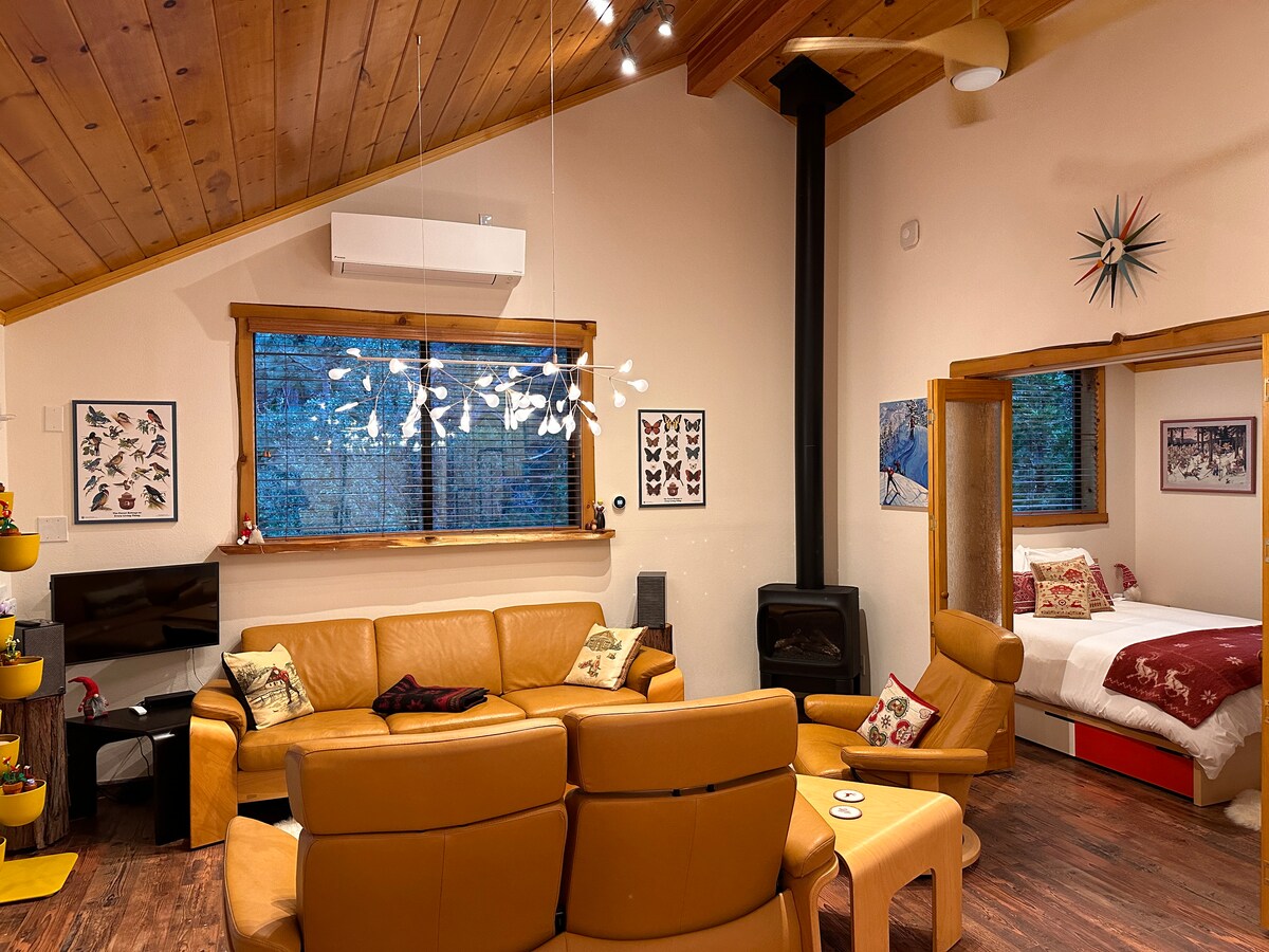 Relax inside and out at our Norwegian inspired ski cabin that has all the quintessential mountain charm you want and expect. Amenities such as an indoor sauna, ping pong, QLED 4K smart TVs, gas stove, hammock, chiminea, and a super comfy bed really make your stay! Located on a large lot surrounded by pines and cedars, you’re bound to see wildlife right from the cabin. We pride ourselves in providing guests a clean and comfortable space to enjoy their mountain adventure—so come stay with us!