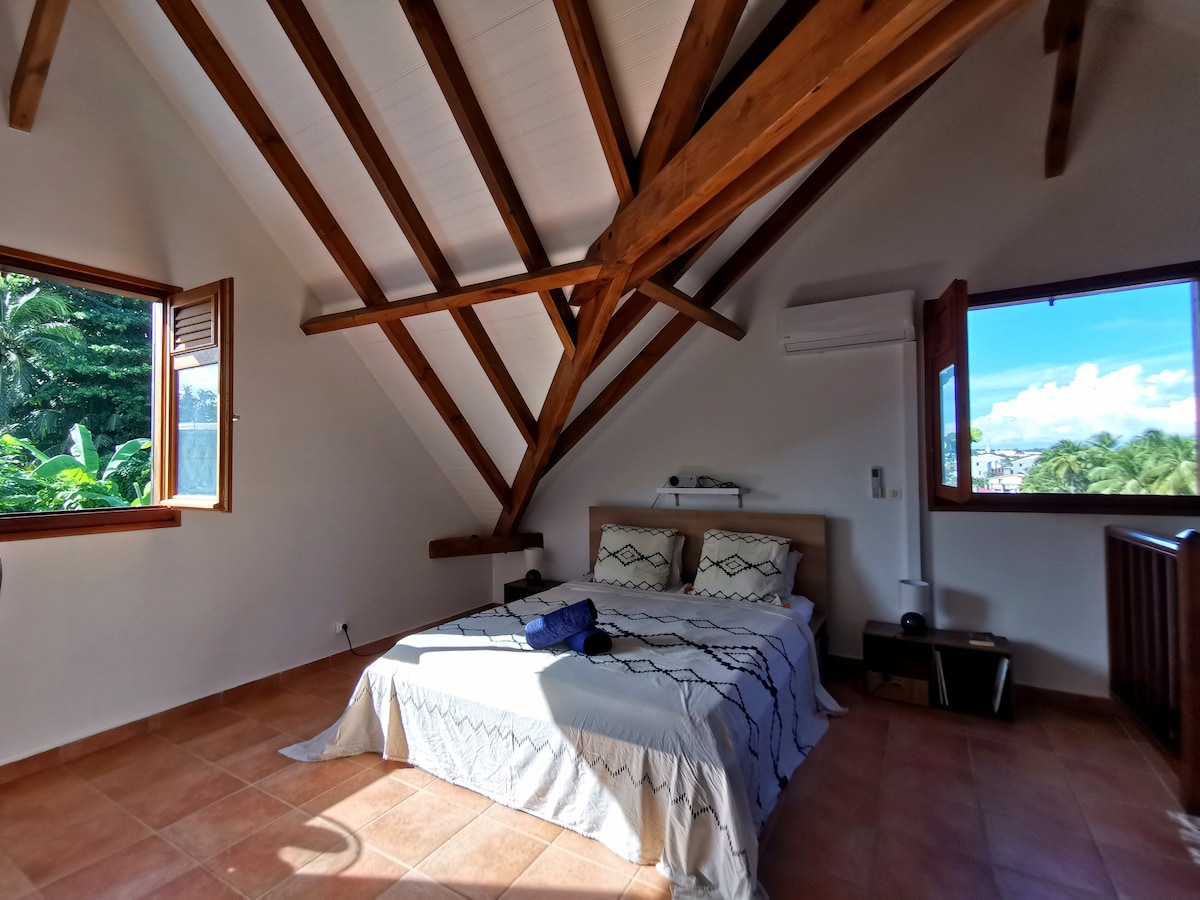 Vulkanik qara qumdan ibarət vəhşi çimərlikdən bir az yuxarıda, səhralıq və kokos ağacları ilə bəzənmiş xüsusi girişi olan studiya. Dəniz mənzərəsi də daxil olmaqla 4 pəncərə sayəsində çox havalandırılır. Məhəllə orijinaldır və yol və ya çimərlik ilə daxil olan Capesterre mərkəzinə çox yaxındır. Gəzinti məsafəsində mağazalar və gəzinti məsafəsində bir çox təbii möcüzələr. Qonaqlar üçün ayrılmış, kokos ağacları və ulduzları ilə üzbəüz cakuzi (iyun ayından etibarən davamlı olaraq əlçatan olur)
