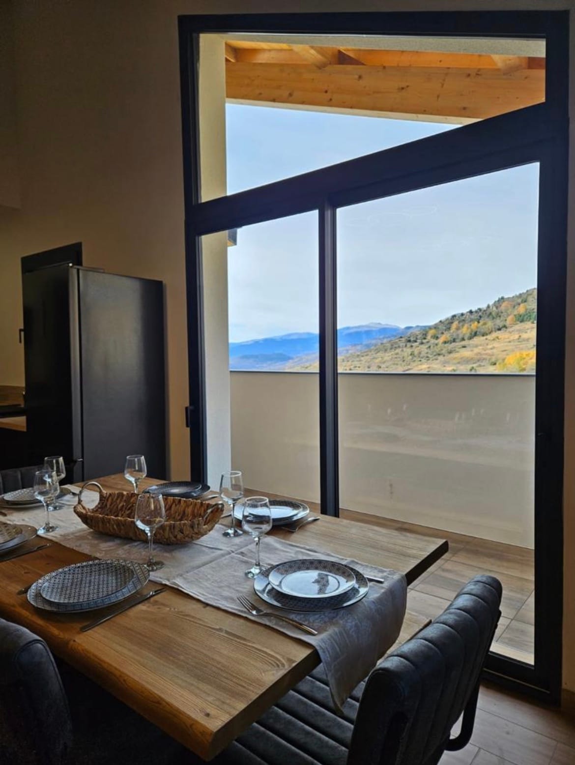 Appartement de montagne cosy entièrement neuf situé à Angoustrine. Exposition plein sud, quartier très calme et très bien exposé. Composé d'une cuisine américaine équipée et d’un salon composé d’une pièce à vivre + canapé clic clac avec accès sur terrasse privative avec vue imprenable sur la chaine des Pyrénées Française et Espagnole. Deux chambres équipées de grands lits dont une donnant accès sur la terrasse. Salle de bain avec douche à l’italienne et wc séparée. Chauffage poêle à granules