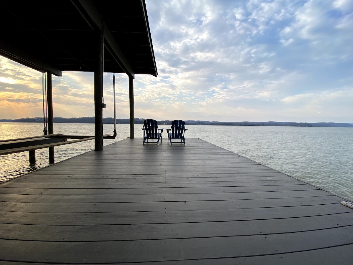 Perfect Luxury Lake House on Watts Bar Lake Main Channel Views + DEEP WATER + 2 Fixed Docks + Upper Deck + Firepit Deep water + awewome views in the middle of it all make the perfect Tennessee Lake Home on Watts Bar for your perfect vacation destination with a two 22-feet deep water boat slips so plenty of water all year! Located on the Main Channel next to several Marinas + Restaurants on Watts Barr Lake near Spring City on the Tennessee River, where you'll get fabulous fishing and water toys!