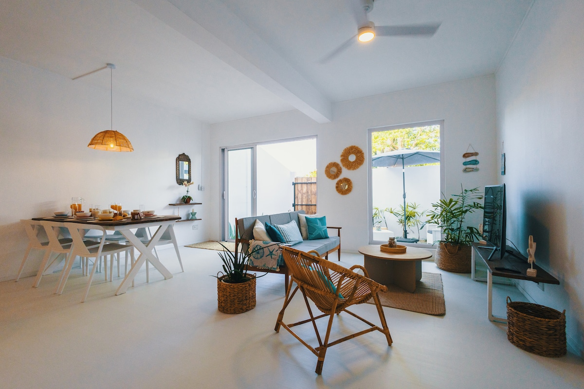 Sel & Sable is a modern & cozy 3 bedrooms duplex, beautifully decorated in a beach inspired design and just a short walk away from the peaceful and magical beach of Bain boeuf (between Pereybere and Cap Malheureux). It's perfect for a relaxing stay with family and friends.