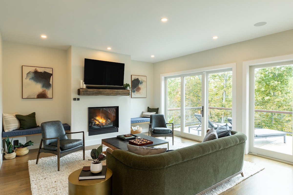 Modern Woodland Getaway with Hot Tub and Fire Pit