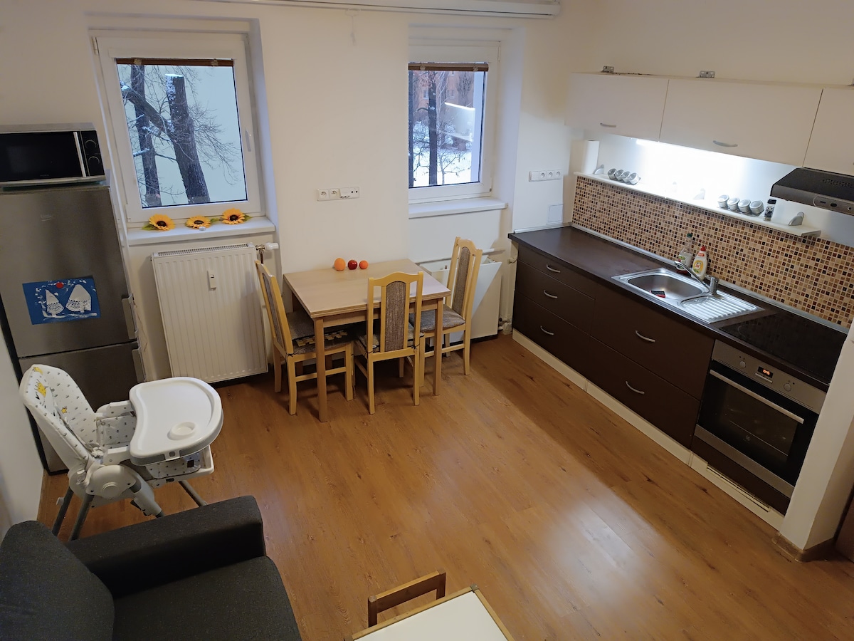 A chic modern apartment in the middle of rolling hills 'Myjavske Kopanice'. Quiet location with beautiful views and with a south facing balcony, a perfect place to unwind. The apartment comes with a fully equipped kitchen, smart tv and washer/drier machine.