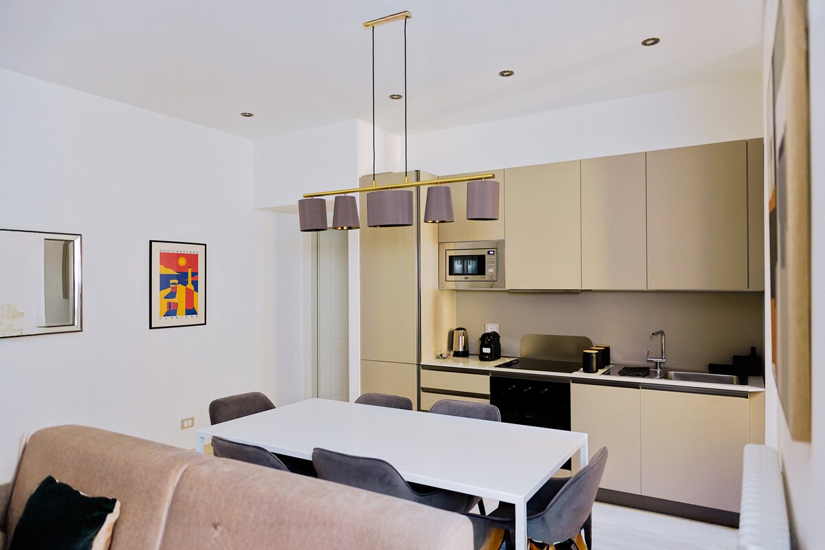 Bu rahat mənzildə açıq tavanlar və tağlı qapılar kimi maraqlı orijinal detallar var və Toskana terrakota döşəmələri ilə təmir olunub. Bu 80 kvadratmetrlik mənzildə köhnə və müasir üslubların dəbli qarışığı ilə zövqlə mebel seçilib: taxta tirləri olan gözəl tavanlar, Toskana terrakota döşəmələri, mətbəx və hamam otaqlarında gözəl dekorasiyalar var. Yemək masası altı nəfərin rahat oturmasına imkan verir.