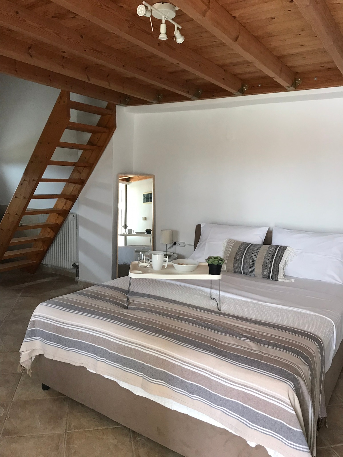 A fully furnished double decked small house with a shared garden and private parking. It is located in Varos, a small traditional village in the middle of the island, which makes it a perfect starting point for exploration! Some of the best sandy beaches are close. Keros beach, which is considered the safest beach for kitesurfing in Europe, is just 15 minutes away by car.
