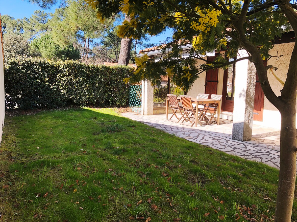 Maison rénovée entièrement, située dans une rue très calme à 500m de la mer et du centre ville. En saison, commerce et animations, marché nocturne le dimanche soir, fête foraine l’été. 500m du marché quotidien et du Casino. Jardin comprenant espace extérieur privé, une terrasse vue sur les pins et une sur le côté à l’ombre. Escaliers à l’extérieur. Les draps/serviettes ne sont pas fournis. Le forfait ménage est au choix: 40 euros à régler sur place ou à réaliser soigneusement.