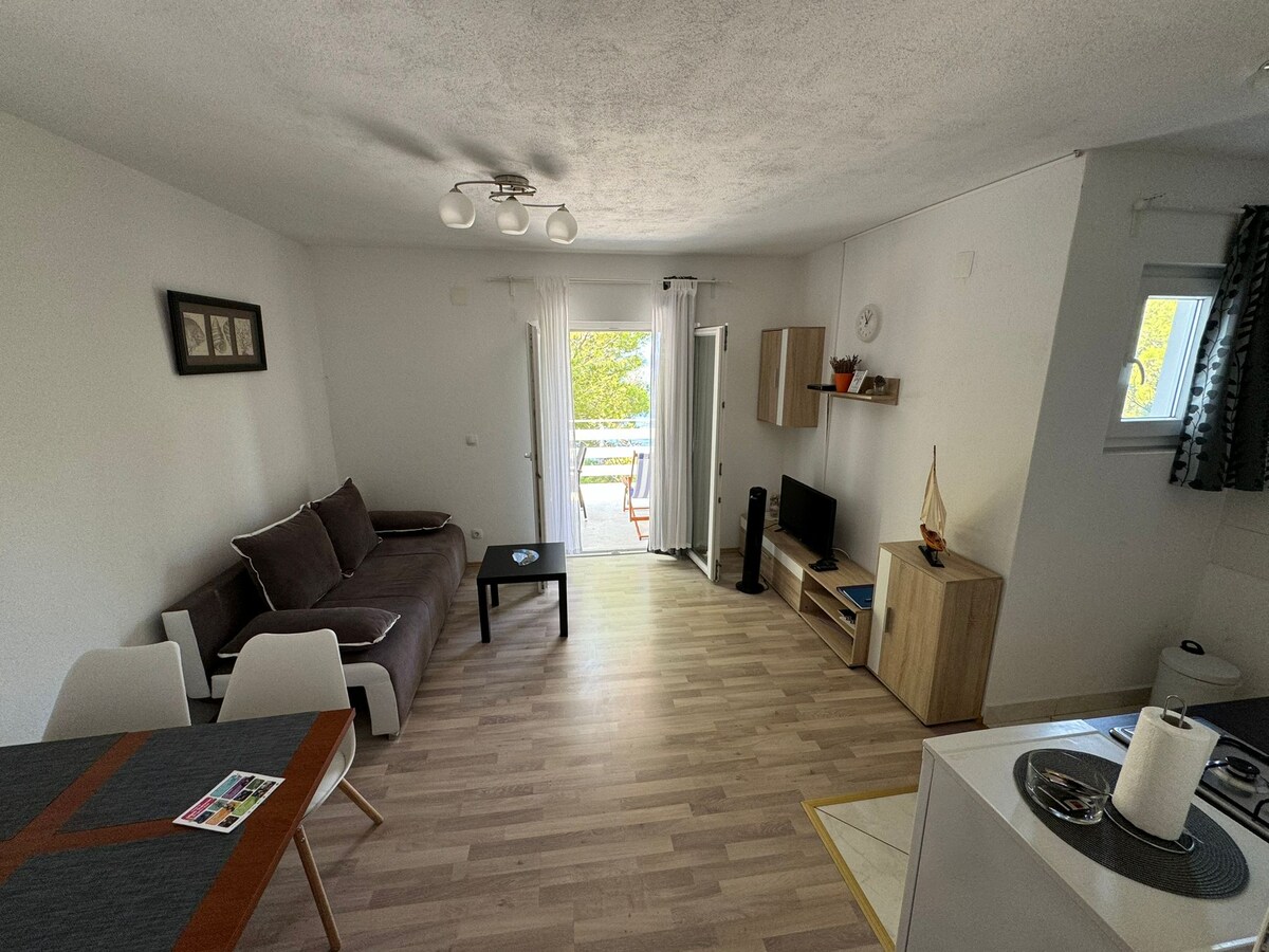 Beautiful newly built apartment in Villa Evita! Apartment has one bedroom and living room with sofa bed, kitchen, balcony and bathroom. Apartment is fully equipped with modern furniture, LCD TV, satellite TV, Wi-Fi internet, shared washing machine and everything You need for vacation.Apartment can accommodate up to 3 adults or 2 adults with 2 children. Please note that we cannot accept reservations for 4 adults.