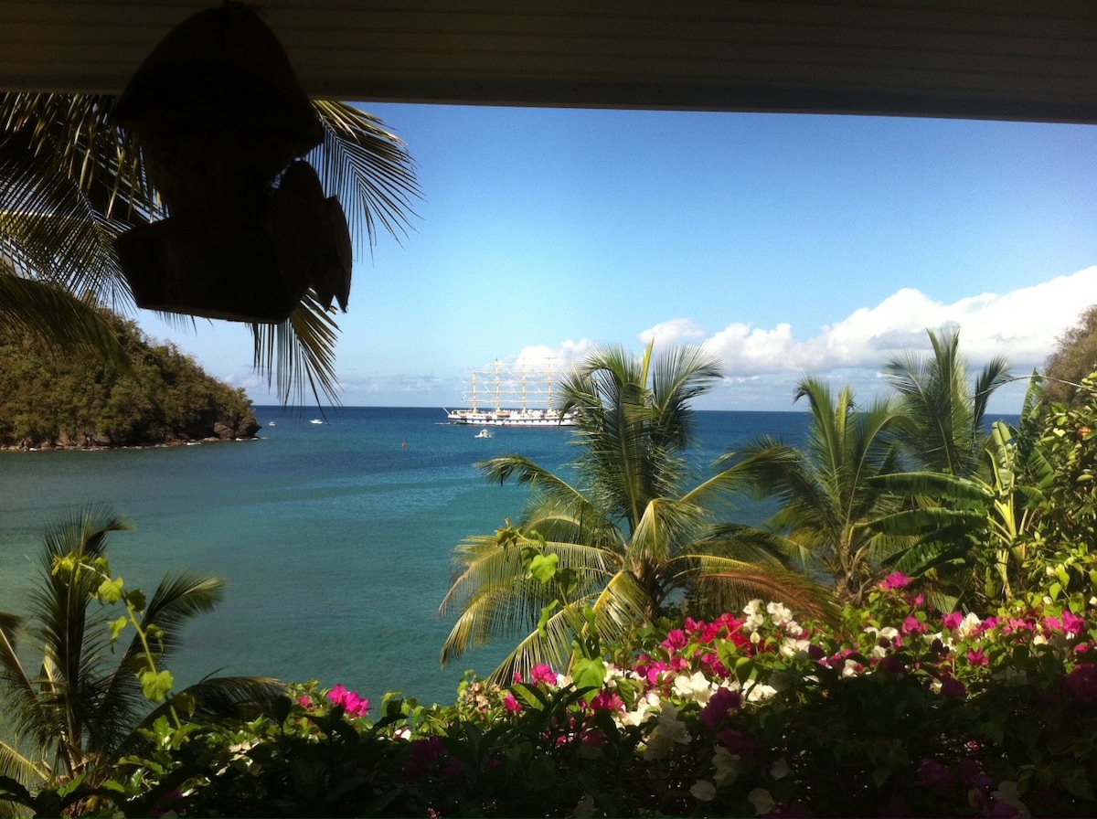 🌴 Welcome to Treetops Villa Carambola Suite! Enjoy stunning views of the bay and Caribbean Sea 🌊. This modern apartment has a full kitchen 🍽️ .Relax with 300+ cable channels 📺, free Wi-Fi, and a spacious indoor-outdoor living area. 🚗 Free parking. 🍹 8 nearby restaurants & bars may offer free pick-up/drop-off. A perfect island “🚶♂️From the apartment, enjoy a 10 minute short stroll to beautiful Marigot Bay 🌊 where all the restaurants 🍽️ and bars 🍹 await!