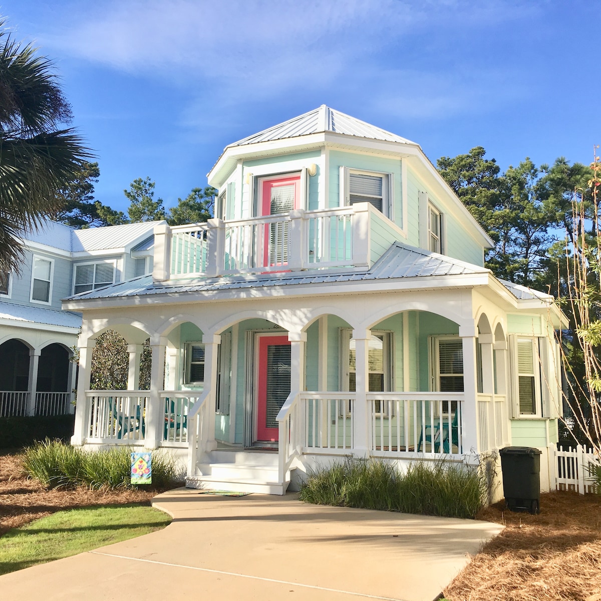 Enjoy an inspirational artist colorful beach cottage lined with palm trees. Walk to beach / Gulf of America. Located on the beach side of 30A at the end of a no drive through street. Marble floors w/ 10 ft. ceilings & original artwork. Rosemary Beach & Seaside 5 mins away for fabulous food and shopping. Rent bikes for a perfect day out. MAXIMUM 2 car parking. **Backyard studio is also rented with private entrance. Main cottage area has own door and is separate and private.