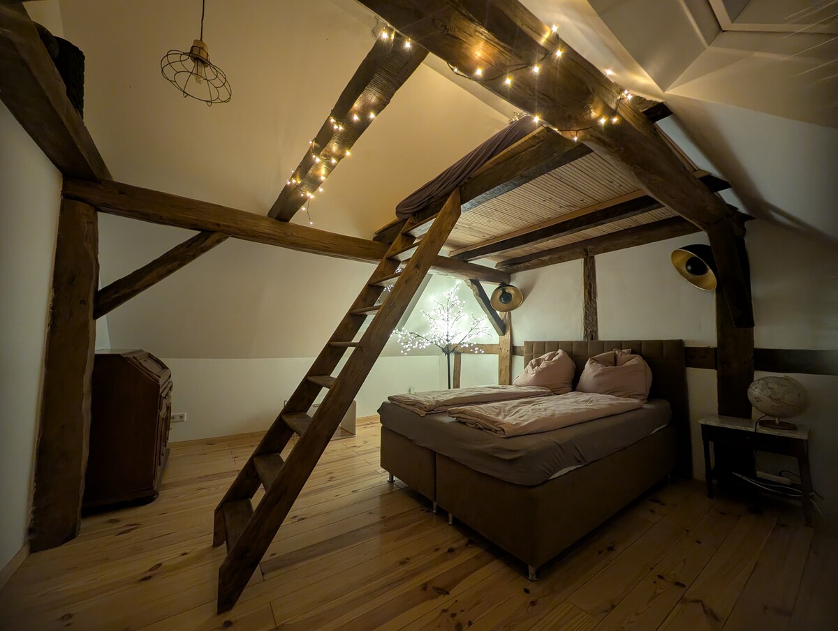 Willkommen in unserer gemütlichen Dachgeschosswohnung in Rosenthal, Hessen! Die Wohnung befindet sich in einem liebevoll restaurierten Fachwerkhaus, das vor dem Abriss gerettet und mit viel Herzblut saniert wurde. Hier erwartet dich ein einzigartiges Ambiente. Die Umgebung lädt zu vielfältigen Aktivitäten ein – von Radtouren über malerische Wege bis hin zu Ausflügen nach Marburg oder zum Edersee. Perfekt für Naturliebhaber, Radfahrer und Erholungsuchende!