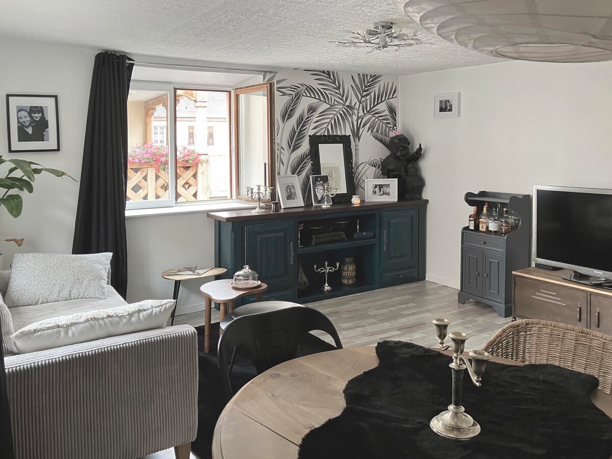 Obernayın tarixi mərkəzinin mərkəzində yerləşən, belfri, turist qatarı və məşhur Milad bazarının heyrətamiz mənzərələrini təklif edən füsunkar mənzildən zövq alın! 1500-cü illərdə tikilmiş və tam təmir edilmiş ənənəvi Alsatian evinin birinci mərtəbəsində yerləşən bu ev müasir komfortla köhnə füsunkarlığı özündə birləşdirir. Restoranlar, mağazalar və bütün imkanlar çox uzaqdadır və turist ofisi mənzilin düz yanındadır. Yonaguni Spa qonaqlama yerindən 10 dəqiqəlik məsafədədir.