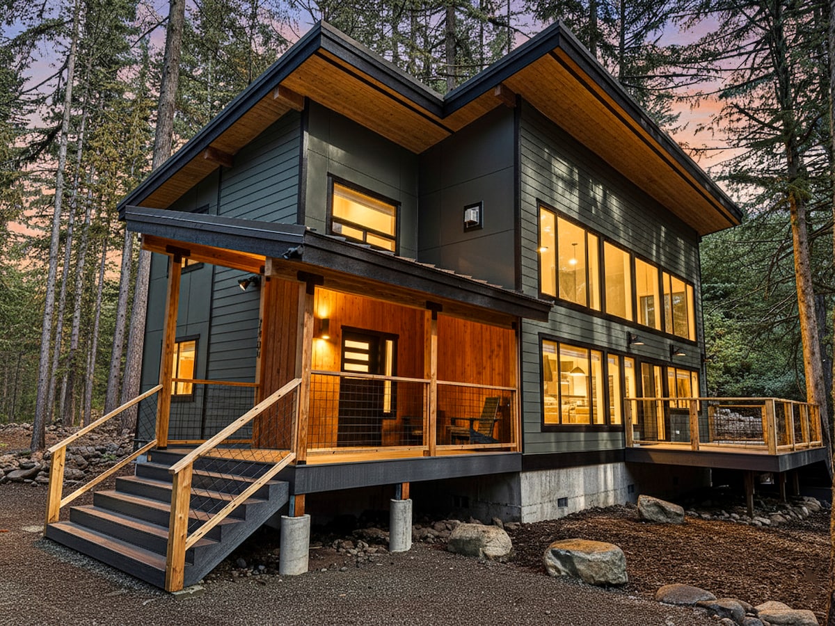 Qranit yamacda yüksəklikdə yerləşən, Şimali Kaskad dağlarının sıx, yamyaşıl meşəsi boyunca uzanan çaydan baxan bu kabinəni görəcəksiniz. Unikal asimmetrik A karkaslı tikili taxta örtüklü divarları, açıq şüaları və böyük həndəsi pəncərələri ilə həm gözlənilməz, həm də tanışdır. Alovun kənarında viski ilə doldurulmuş kart oyunu oynamağınızdan və ya yaxınlıqdakı rushing kremini dinləyərkən hottubda istirahət etməyinizdən asılı olmayaraq, bu kabinə mükəmməl kabinə təcrübəsi təklif edir.
