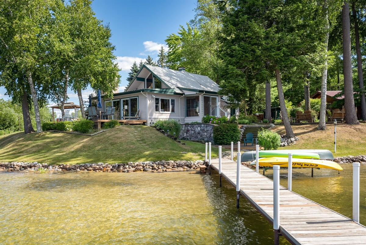 Escape to your private hot tub retreat at our lakeside sanctuary at this unforgettable Big Bass Lake cottage. Watch the snow fall while soaking your cares away in our Hot Springs hot tub under our covered gazebo or enjoy a crackling fire in our outdoor firepit with stunning views of the lake. Our spacious home accommodates 10 guests and boasts a sprawling living room with panoramic lake views. Fully equipped kitchen, high speed wi-fi, smart TVs, Xumo streaming boxes and shuffleboard.