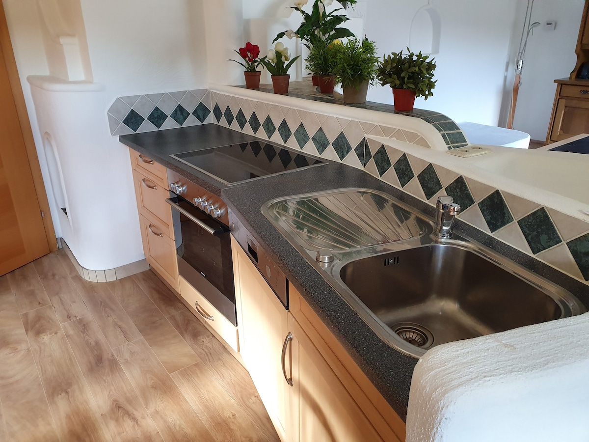 Our apartment is built in 2016 and we loved it to design the rooms, the equipment and the decoration. It´s based on the ground floor of our house and has an seperate entrance, an extra room for skies/hiking shoes, an extra entrance and a directly conecting to the terasse and the garden. The appartement is fully equipped and the overview to the beautiful mountains around you can enjoy sitting on the couch :) Just try and test the "homy" feeling in our house...