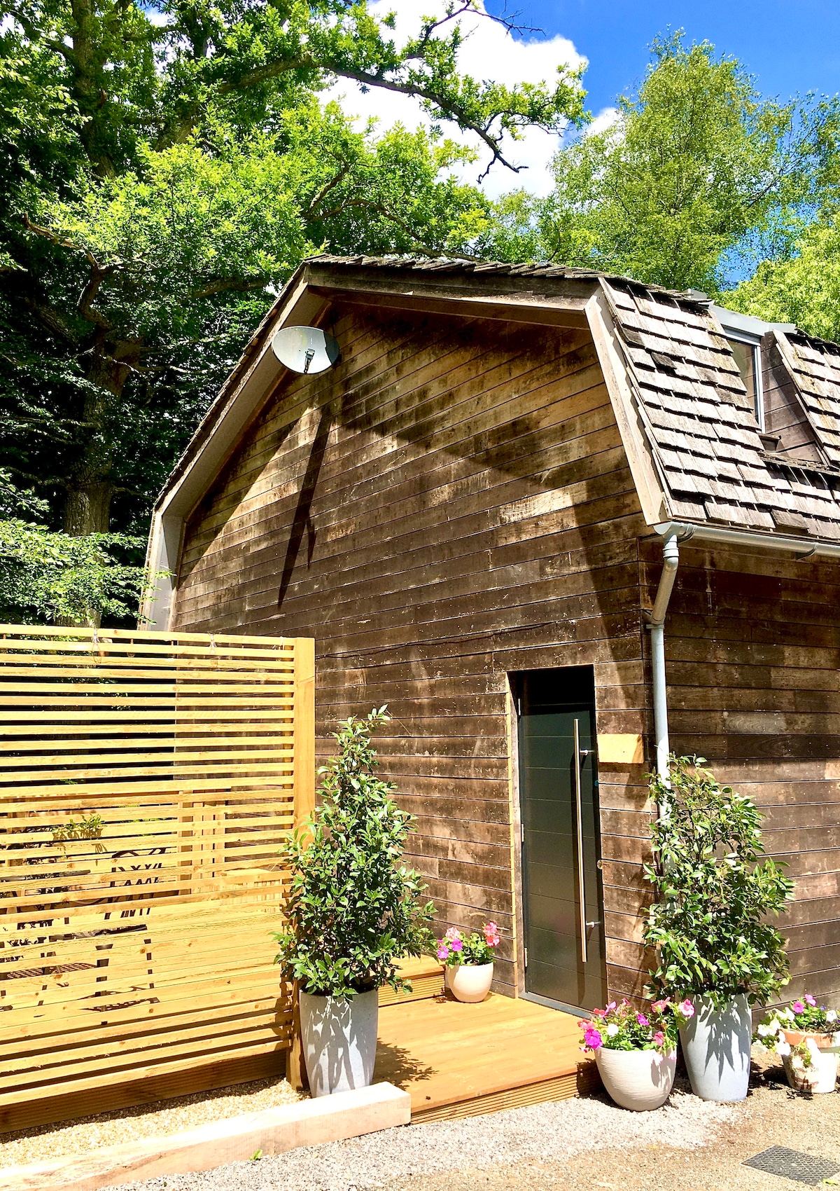 Zeytun ağacından tikilmiş, müstəqil, müasir memar tərəfindən dizayn edilmiş bu samanlıq, gözəl AONB kəndi ilə əhatə olunmuş, möhtəşəm mənzərələri olan, cütlüklər üçün lüks bir istirahət yeridir. İtlərlə gələ bilərsiniz. Bir çox məşhur ev və bağların, Sissinghurst Qəsri, Great Dixter, Chartwell, Batemans və Scotney Qəsrinin yaxınlığında. Royal Tanbric Uells Spa şəhəri 20 dəqiqəlik məsafədədir. Ən yaxın kəndimiz olan Uodherstdə 2 kiçik supermarket, əla qəssab, delikates, 2 pab və paket xidmətləri var.