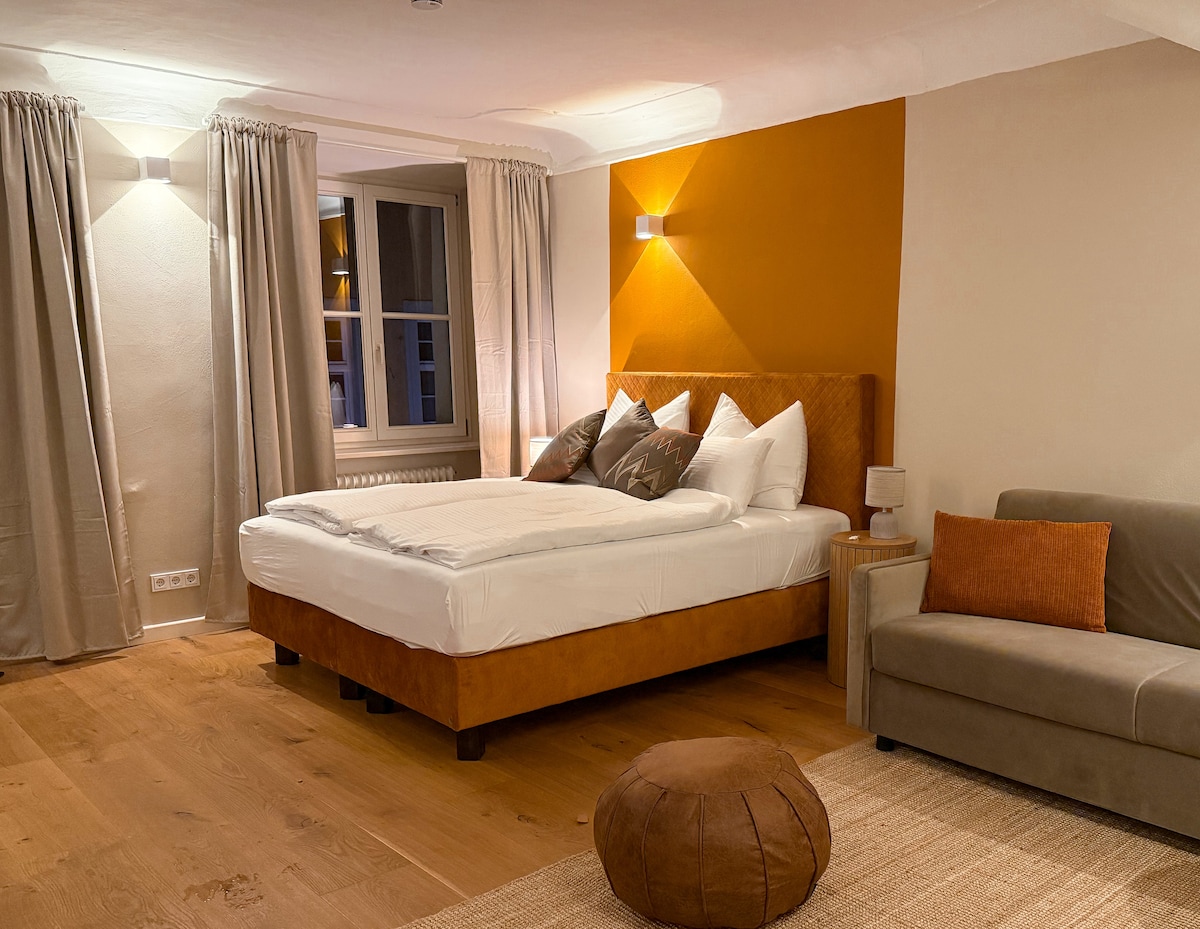 Welcome to the Old Town Loft Passau – your Blended Home in the heart of the historic city! Perfect for business trips, getaways, or sightseeing: - Luxurious box-spring beds & sofa bed with full mattress - Workspaces with monitors & ergonomic chairs - Smart TVs, fitness gear, coffee machine, milk frother - Washer-dryer, fully equipped kitchen with games - Short walk to the cathedral & Danube, 10–15 min to central station & university, 8 min drive (car) to ZF