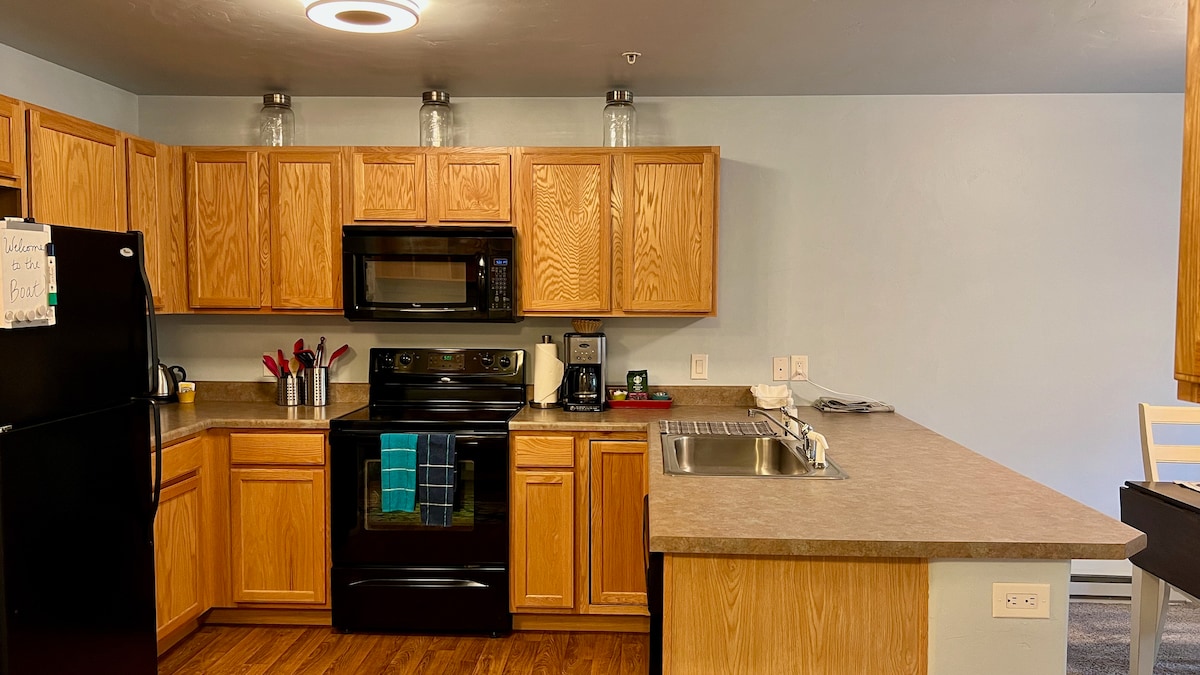 Mountain Resort Condo! 985 sq ft condo 4 beds/2 Bath Bedroom 1 : Queen bed (on the firm side) Bedroom 2 : Queen bed( on the firm side) Living Room: trundle bed (2 twin beds) 2 full baths Stocked cookware Balcony with views Free ski season shuttle located in front of condo to gondola base ( 5 min. ride) Hot tubs, sauna, new workout room New 24 hr laundry room at clubhouse Heated ski closet A host that answers your questions Free parking for 1 car. Second car if availability.