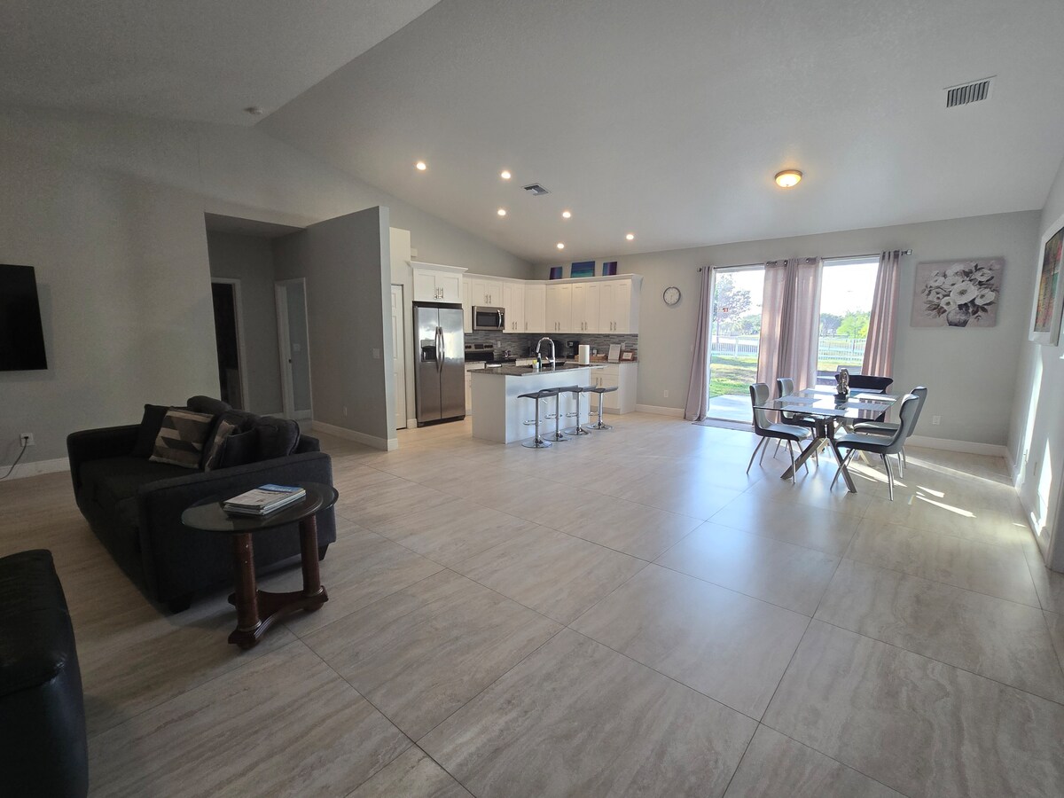Royal Palm-Biçdə əla ərazidə yerləşən rahat məkan. Walmart, Publix, Starbucks, Wellington mall və müxtəlif yemək yerləri də daxil olmaqla ehtiyacınız olan hər şeyə 5 dəqiqədən az vaxt qalıb. Evin özü sizi tərk etmək istəməyəcək imkanlarla doludur. Bura örtülü hovuz, qril olan veranda, balıq tutmaq və kayakla üzmək üçün göl və bilyard masası və digər oyunlarla oyun otağı daxildir. Ailələr üçün çox uyğundur.