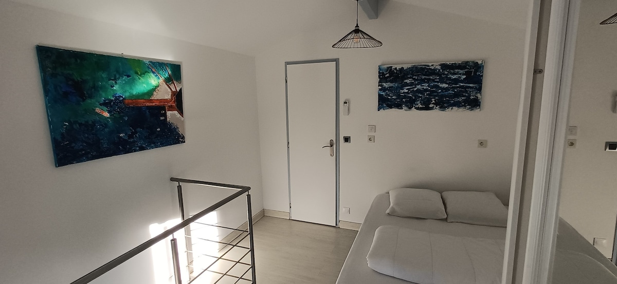 Evimin sonunda yerləşən, öz girişi və xüsusi terrası olan ayrıca mənzil. Royanın Grande Conche çimərliyindən, şəhər mərkəzindən və mərkəzi bazardan 1,5 km məsafədə, kinoteatr, hovuz və qatar stansiyasından 600 m məsafədə sakit bir yaşayış yerində yerləşir. Evin qarşısında parkinq asan və pulsuzdur. Yataq dəsti və hər nəfər üçün bir əl dəsmallığı təmin edilir, çimərlik dəsmallarınızı götürməyi unutmayın. 1-ci zəruri imkan təmin edilir.
