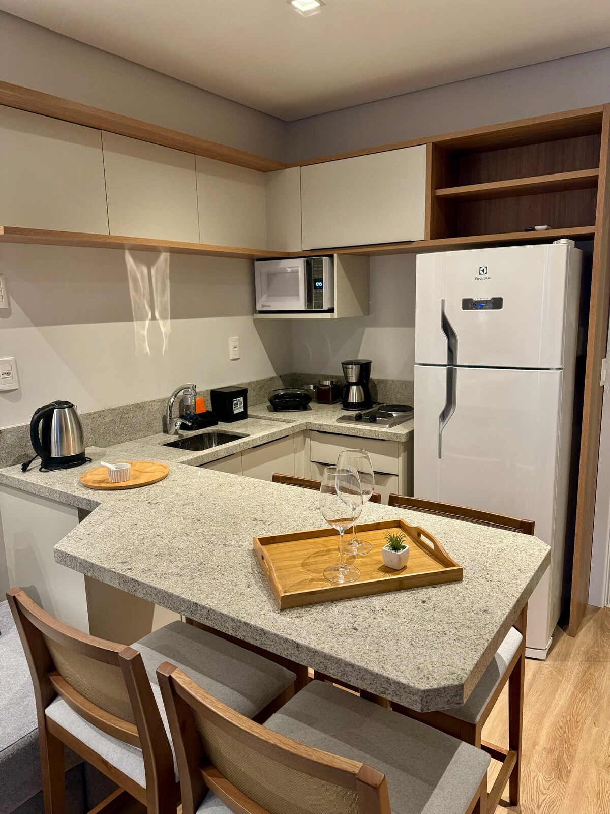 Bütün infrastruktura malik Sky Borges Otelinin daxilində yerləşən mənzil: pulsuz parkinq, qızdırılan üzgüçülük hovuzu, sauna, cakuzi, uşaqlar üçün yer, bodibildinq otağı, yataq dəstinin dəyişdirilməsi, çimmək və otağın təmizlənməsi (kameralar QABLARI YUMAYIN). Ar, ağıllı TV 42", kabel televiziyası, Wi-Fi və minibar, elektrik sobası, elektrik piştaxtası, hava fri və mikrodalğalı sobası olan minikozinha. Səhər yeməyi daxil deyil, lakin birbaşa çıxış zamanı istehlak edilə və ödənilə bilər.