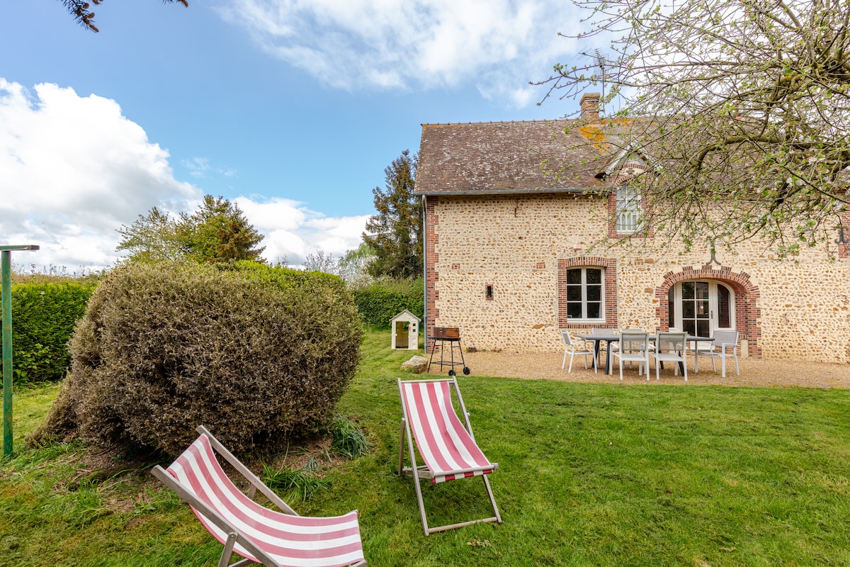 Dinc və yaşıl mühitdə yerləşən, zövqlə təmir edilmiş tipik Perçe fermamıza xoş gəlmisiniz. La Ferté-Vidame şəhərindəki məşhur Citroën Parkından cəmi bir neçə dəqiqəlik məsafədə yerləşən bu simvollu ev ailə, cütlük və ya teleyayım ilə rahat qonaqlama üçün idealdır. - Piyada gəzinti -WIFI - Uşaqlar üçün uyğundur