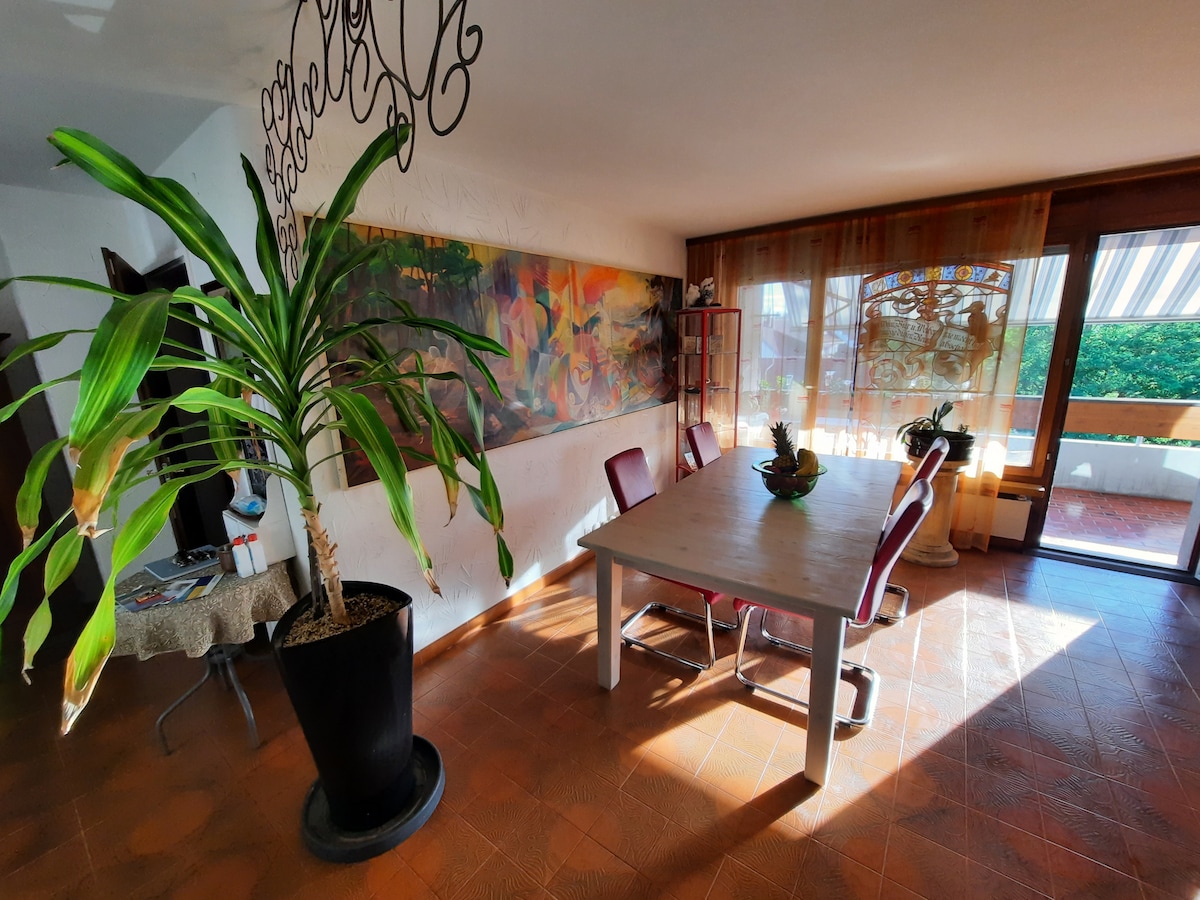 Ennetbadendə liftli 4-cü mərtəbədə müasir, rahat mənzil. Taxta döşəmələri, bitkiləri, rahat divanı və proyektoruyla işıqlı qonaq otağı. Qəhvə maşını və müasir cihazlarla tam təchiz olunmuş mətbəx. Geniş yataq otağı və vannası olan böyük hamam otağı. Free Brunnen Thermen və Forty Seven Wellness Spa-dan cəmi bir neçə dəqiqəlik məsafədə. Baden stansiyası yaxındadır və Sürix qatarla cəmi 15 dəqiqəlik məsafədədir.