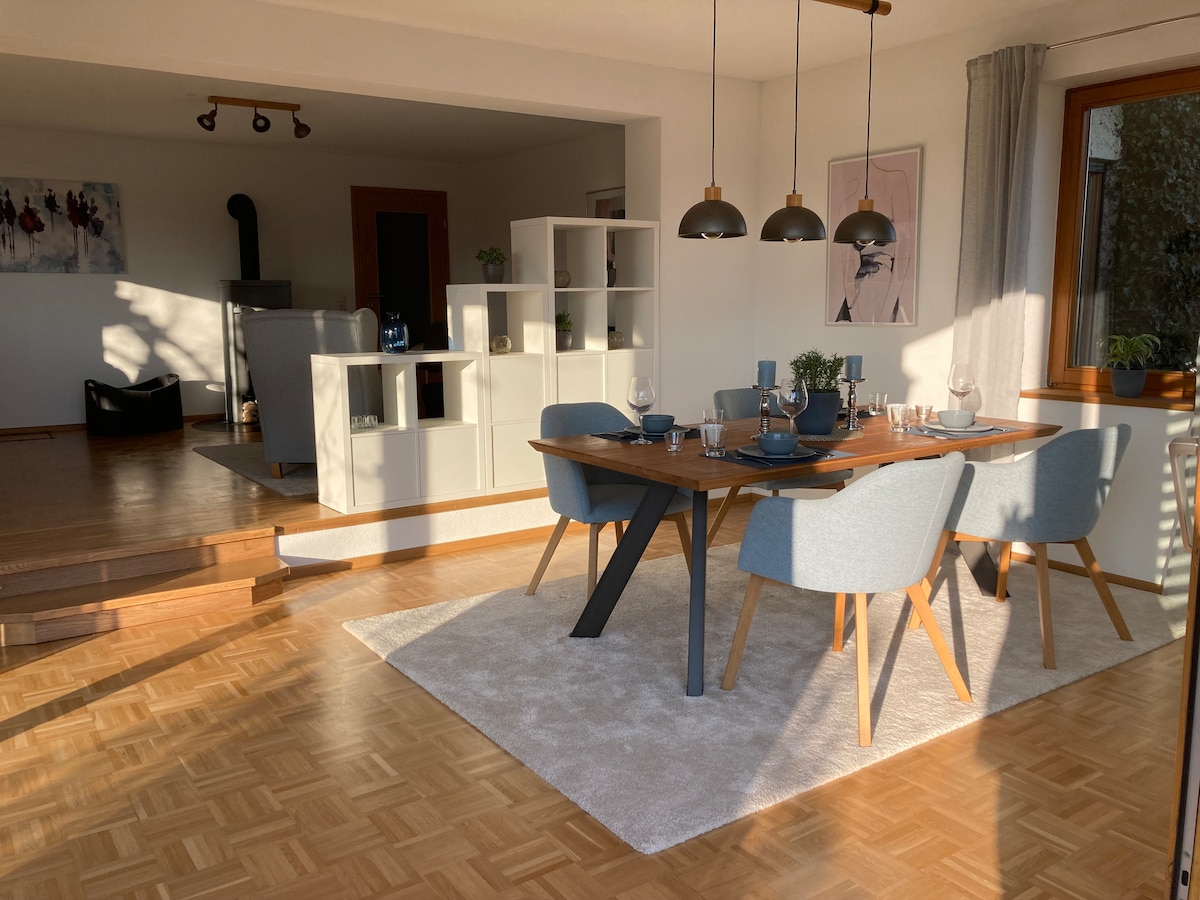 Təxminən. 85 m² mənzil, 2020-ci ildə tamamilə təmir edilmiş və təmir edilmiş mənzil. İkinci çarpayı yataq otağı və ya qonaq otağına yerləşdirilə bilən qatlanan çarpayıdır. Birbaşa qonaq otağının qarşısında terras var, əlavə olaraq böyük bağ da istifadə edilə bilər. Birbaşa "Albsteig" yürüyüş cığırında. Schluchsee, Titisee və Feldberg təxminən 30-40 km məsafədə, İsveçrəyə təxminən 7 km məsafədə sərhəd keçidi. Öz avtomobiliniz tələb olunur, çünki kənddə (təxminən 4 km məsafədə) ticarət obyekti yoxdur.