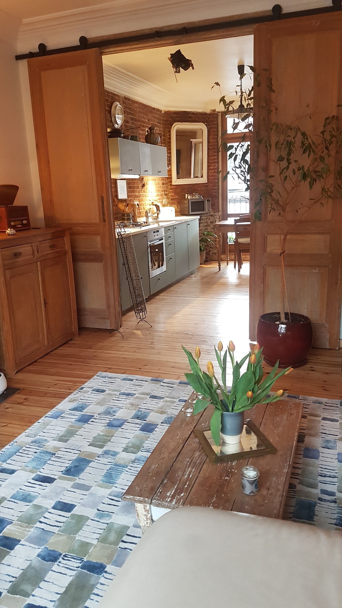 Sahəsi 93 m² olan mənzilimiz Antverpenin mərkəzində kiçik və sakit yaşayış yerində yerləşir, 2 terras, keyfiyyətli çarpayısı olan 2 yataq otağı, açıq mətbəxi (tam təchiz olunmuş), rahat hamam otağı və ayrıca tualeti var. İnteryer köhnə ailə mebeli və son dizayn elementlərinin qarışığıdır. Ağıllı TV və yaxşı Wi-Fi bağlantısı əlbəttə ki, mövcuddur. Rahatlığınız üçün paltaryuyan maşın və qurutma şkafı da var. Şəxsi yanaşmanı sevirik, inşallah!
