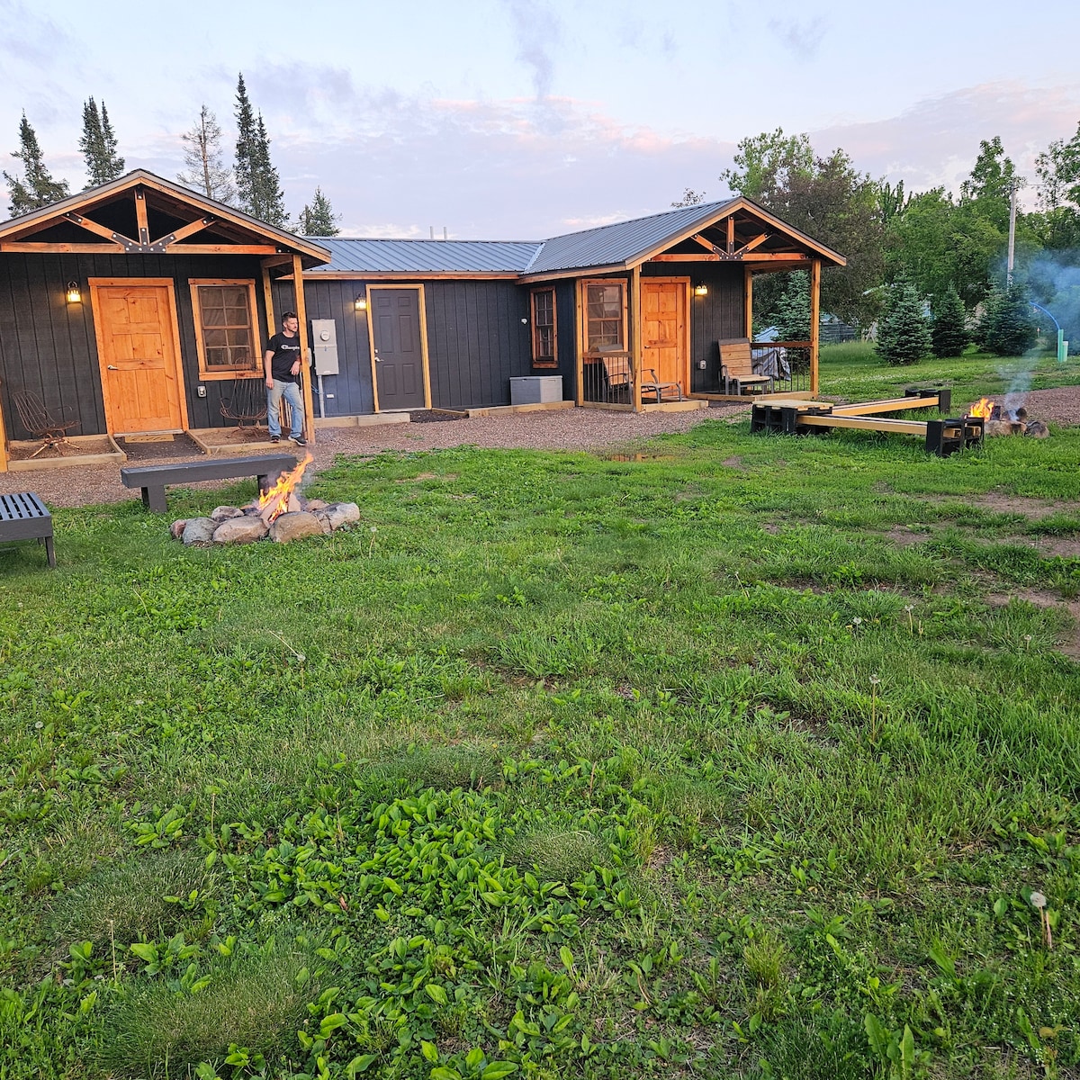 When you need a break from trail riding the best ATV and snowmobile trails in Northern WI, hiking the beautiful Bluehills Ice Age trail, downhill skiing at Christie Mountain, or hunting and fishing...do it with us in these unique and beautiful cabins. There are three wonderful Restaurants/Bars within walking distance from the front door. Weyerhaeuser also has a wonderful park with a playground, ball fields, and a six pickle ball courts.