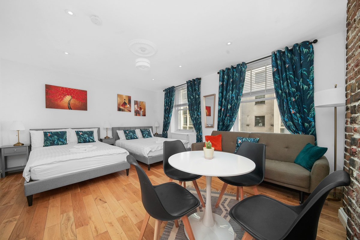 Beautiful and spacious 1-bedroom apartment right in the centre of London — just 2 minutes walk from Leicester Square, Piccadilly Circus, Oxford Street and Regent Street, in the heart of Soho. West End theatres and host of amazing restaurants, cafes and bars to choose from.
