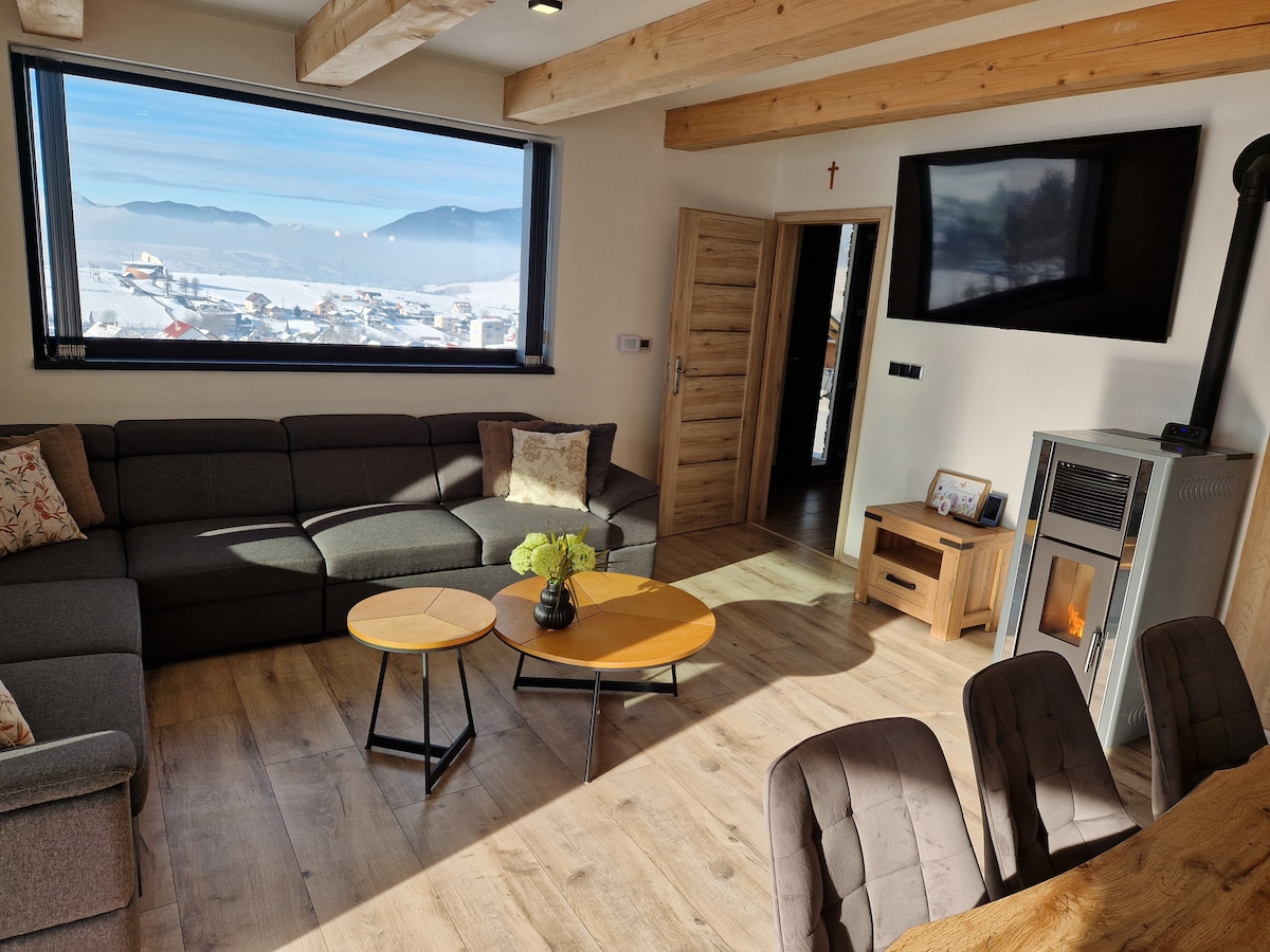 Utečte do našej útulnej chatky na okraji dediny, priamo pri potôčiku. Užite si veľkú prekrytú terasu so sedením a ohniskom, ako aj vonkajšiu kaďu. Interiér je plne vybavený a ponúka luxusnú kuchyňu a kúpeľňu, ideálny pre 4 osoby. Obklopení prírodou, s úplným tichom a súkromím, si vychutnáte očarujúci panoramatický výhľad na lúky a majestátne hory so skalou Hrdoš, priamo z pohodlia postele a terasy. Atmosféru dotvárajú drevené a mramorové prvky. Relaxujte a načerpajte novú energiu!