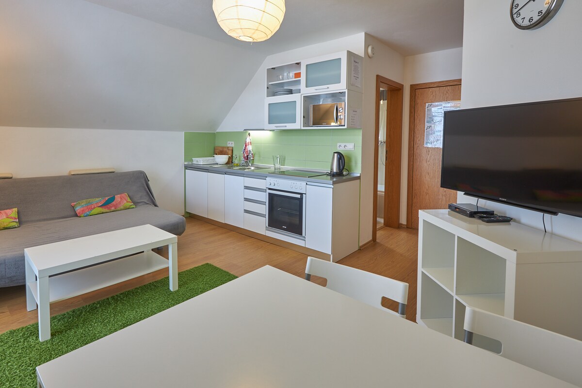Sizə birbaşa xizək yamacında Təbii park Aşağı Tatraya yaxın, panoramada yeni mənzilimizi təklif etmək istərdik. Gəzinti məsafəsində FunArena, restoranlar, barlar, mağazalar, sağlamlıq, xizək/velosiped üçün Kross ölkə yolları tapa bilərsiniz. Mənzilimiz Wi-Fi, liftli qaraj parkinqi, xizək anbarı, bio yanğın yeri, qabyuyan maşınla tam təchiz olunmuş mətbəx, bir ayrı yataq otağı və iki nəfərlik çarpayısı olan bir qonaq otağı təklif edir. Hamam paltaryuyan maşın,paltarqurudan maşın və böyük vanna ilə təchiz olunub.