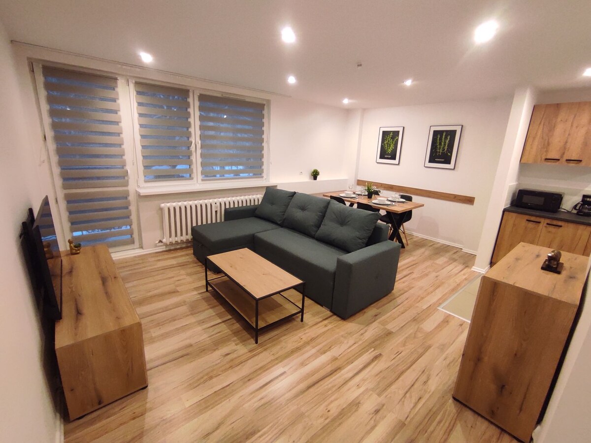 12min do A4, 25min do Gliwic, 15min do Rybnika. Szukasz komfortowego miejsca na pobyt w Czerwionce-Leszczynach? To studio idealnie sprawdzi się zarówno dla par, grupy przyjaciół, jak i rodzin. Leszczyny przy ul.Morcinka. Blisko sklepy spożywcze, apteka, przystanek autobusowy. Mieszkanie oferuje 3 rozkładane sofy, każda dla 2 osób–pomieści maks 6 osób (zaznacz podczas rezerwacji). Świeża pościel i ręczniki w cenie. Wygodny stół jadalny, przy którym można zjeść lub popracować. 4 piętro bez windy