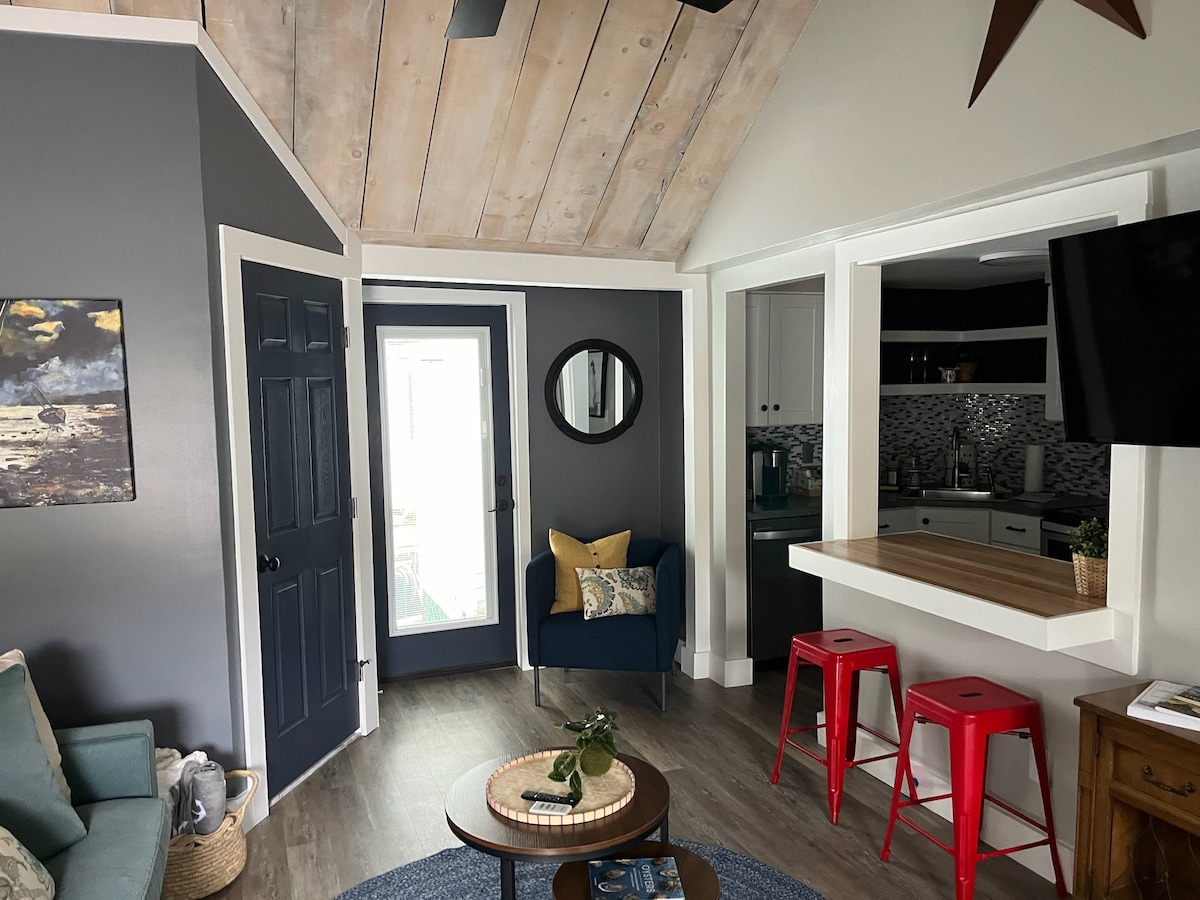Our waterfront cottage is a unique property offering style, tranquility, and walking access to Portsmouth’s Market Square. The theme is a blend of New England charm and Scandinavian modern. We offer an amazing view, two decks, a modern kitchen, laundry, and free parking for one vehicle. This premium property sleeps four, counting children. It offers a quiet romantic escape for the discerning traveler, and yet is just a ten minute walk to Market Square.