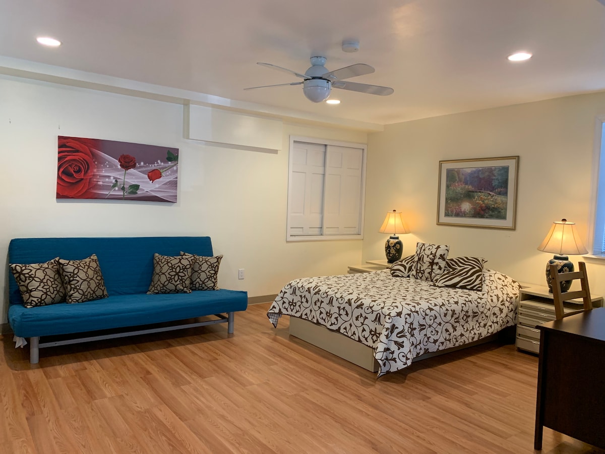 Flex Comfort Apt #1 1 BR / 1 BA-dır və 4 yatır. Mənzil №1 3 mənzillik binanın alt mərtəbəsidir ("Zirzəmi"). Xüsusi Parkinq və Giriş. Əla döşəkağları, döşəkağları, böyük ekranlı ağıllı televizorlar, bir neçə masa və təmiz. Ailəvi yemək hazırlamaq üçün yaxşı təchiz olunmuş mətbəx. Öz mətbəxiniz və Ailə Otağınızın daxil olduğu qiymətə 2 x otel otağının dəyərini əldə edin. Qrinviç Qatar stansiyasından 1 mil - Grand Central-a 45 dəq. 95-ə və KT və Nyu Yorka asan giriş imkanı.