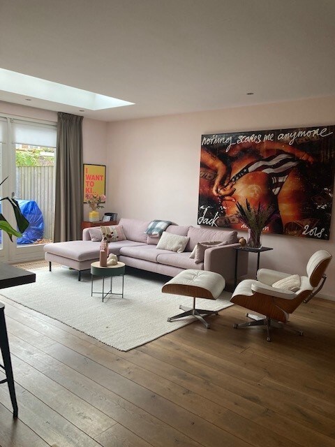 Gözəl, işıqlı evimiz həqiqətən də dincəlmək üçün bir yerdir! Məsələn, günəşdən və ya kölgədən zövq almaq üçün müxtəlif oturma yerləri olan cənub tərəfli yaşıl, çiçəkli bağda. Və ya sadəcə oturma otağında kifayət qədər oturacaq/guşə ilə rahat dincəlmək üçün isti bir yer. Geniş mətbəxdə ürəyinizcə bişirə bilərsiniz, hamam otağında isə duş və ayrıca vannadır. Və bütün bunlar Den Bosch şəhərinin mərkəzindən piyada məsafəsindədir!