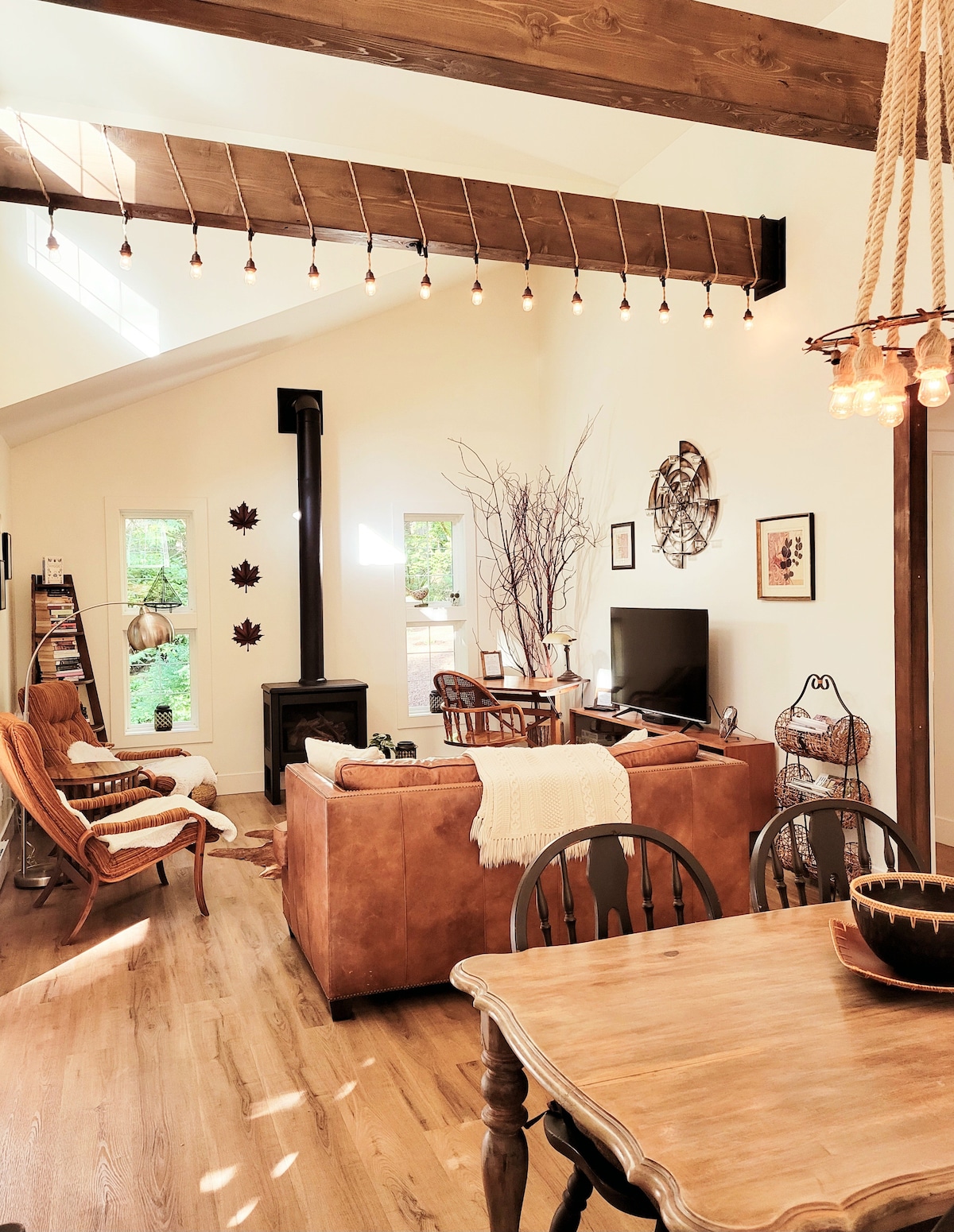 Cozy West Coast Studio Escape to this bright, airy studio guesthouse, just 12 km from Sooke town centre in a tranquil rural setting. Stay cozy with the glass-fronted wood-burning stove and enjoy the outdoors with a Cedar Japanese-style soaking hot tub under bistro lights and a refreshing outdoor shower. Just minutes from Gordon’s Beach, this is the perfect place to relax and soak up the serenity of the West Coast. *outdoor shower turned off during winter months to avoid freezing pipes