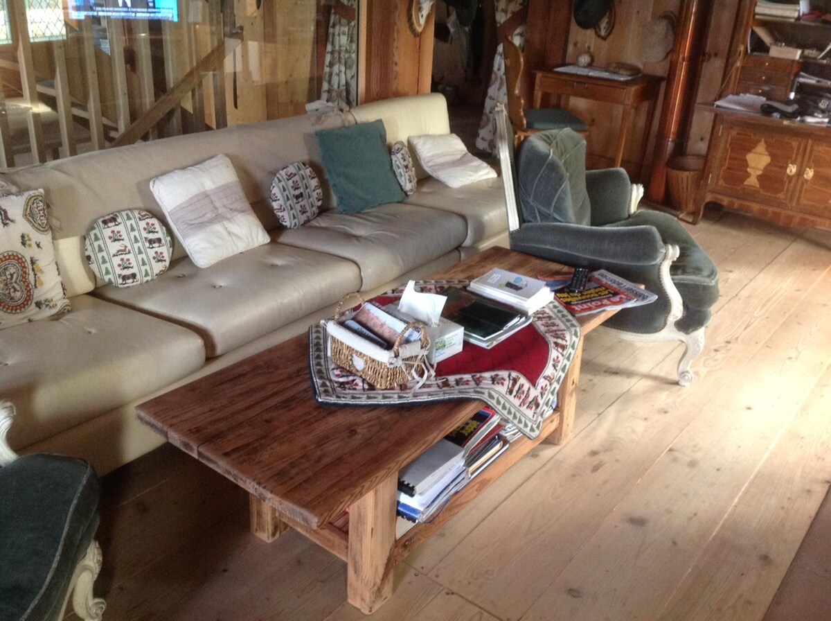 Meşənin kənarında və kəndə söykənən tam taxta dağ evi. 3 yataq otağı, kitabxana, bilyard masası, buxarısı və televizoru olan böyük açıq qonaq otağı. Yemək masası, uduşlu və Amerika mətbəxi. Yemək masası, skamya və stulları olan meşəyə baxan balkon
