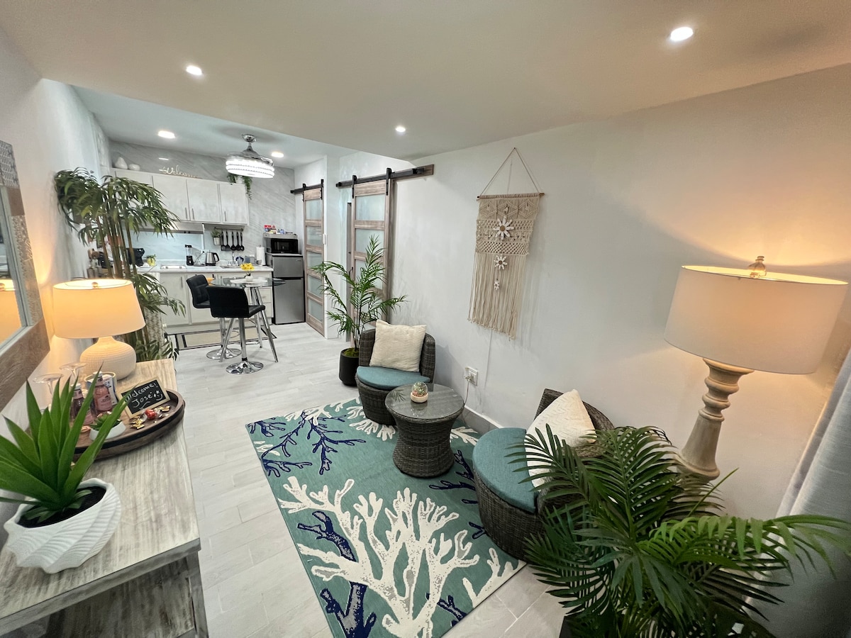 Experience Puerto Rico from a beautiful, modern space just minutes from the airport! Go to stunning Hobie Beach, explore the Mall of San Juan, and unwind in comfort after your island adventures. Perfect for travelers seeking style, convenience, and an unforgettable stay. And if night style is more your thing not to worry we are also extremely close to isla verde the famous La Placita and Club Brava!