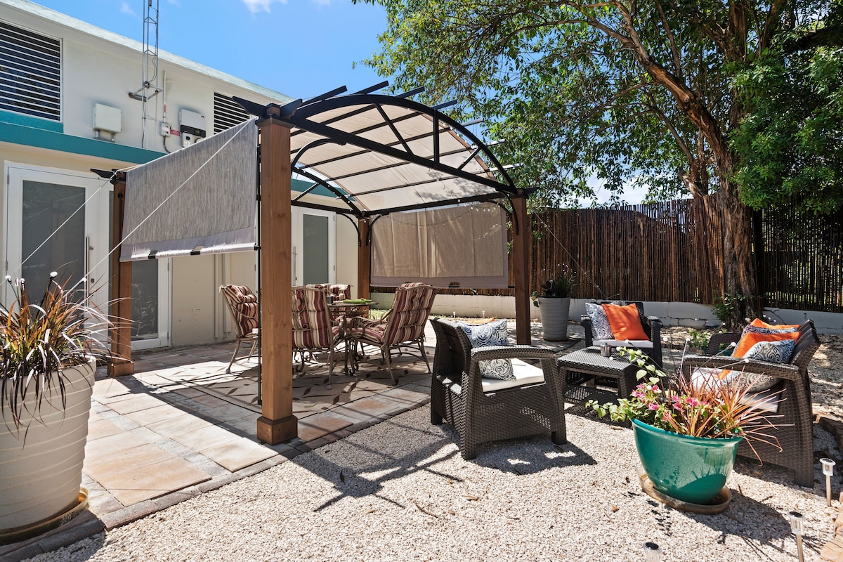 A/C, bir vanna otağı, tam təchiz olunmuş mətbəx və dincəlmək üçün hamamı olan gözəl terrası olan bir yataq otağı olan rahat və mərkəzi mənzil. WiFi, və Kabel TV. Levittown PR-da yerləşir. Punta Salinas çimərliyindən 10 dəqiqə, Bacardí Tour-dan 10 dəqiqə, Old San Juan və Plaza Las Americas Mall-dan 20 dəqiqə, Luis Muñoz Marin Hava Limanından və San-Xuan ticarət mərkəzindən 25 dəqiqə. Restoran, yeməkxana, Walgreen, CVS və supermarketdən gəzinti məsafəsi.
