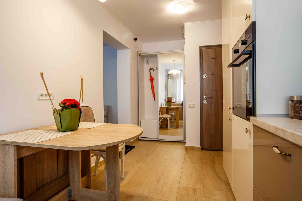 Peace and comfort define our apartment in Coresi, Brașov. It offers all the amenities needed for a pleasant and relaxing stay, including a spacious balcony, air conditioning, and a fully equipped kitchen. Excellently positioned, it allows easy access to the main tourist attractions of Brașov, with restaurants, cafes and shops a few steps away. The maximum capacity is three people, making it ideal for couples and families.