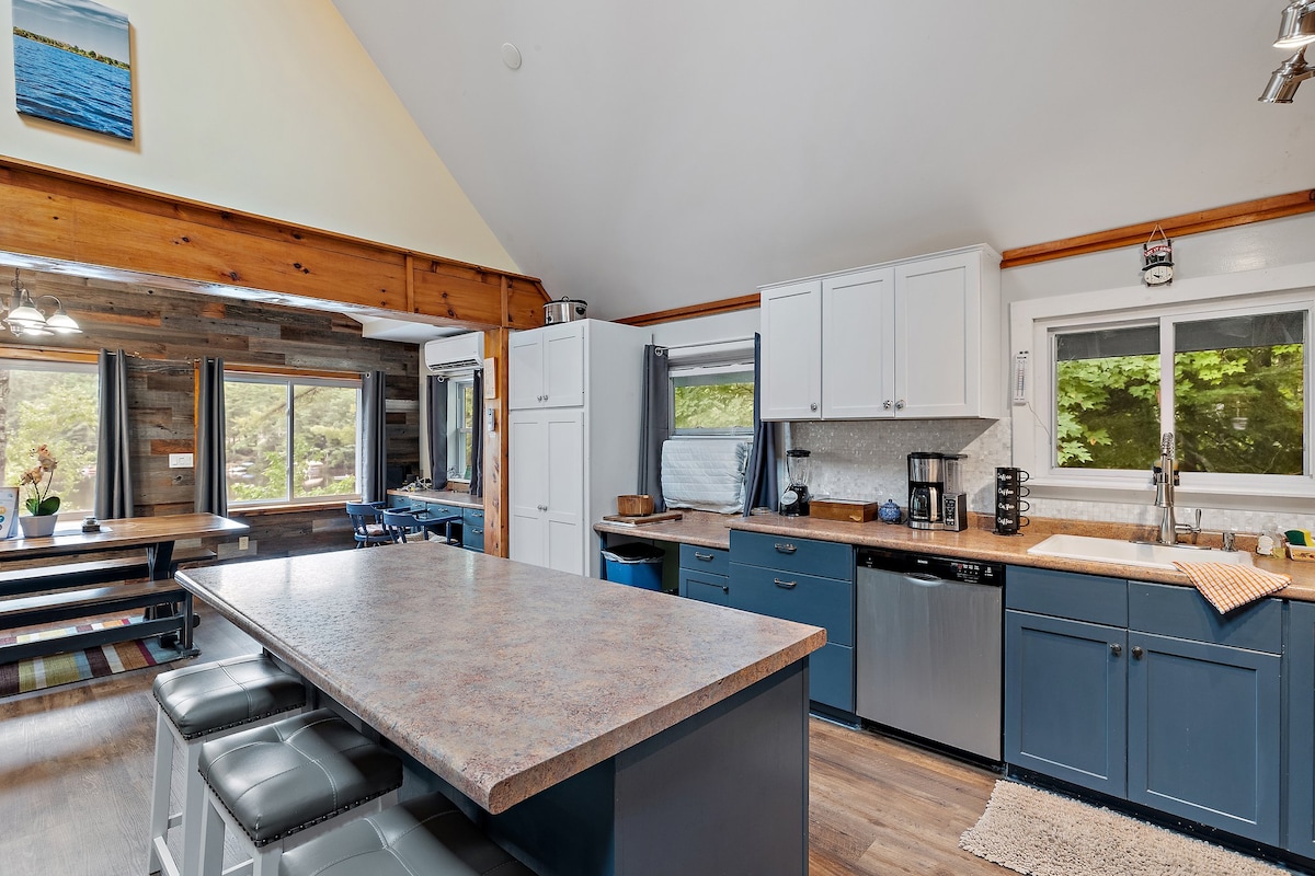 This Lake Sunapee Region cabin retreat is perfect for romantics, artists, writers, outdoor enthusiasts, gardeners, friends, & family. Centrally located between the area's best lakes and mountains, convenient to area attractions, and outdoor activities. Still, the cabin feels like a destination in itself, where you can relax, recharge, and reconnect. Cozy up by the stone fireplace, relax on the porch, see nature, read, listen, play, cook, stargaze, and enjoy just being! M&R license #: 063685